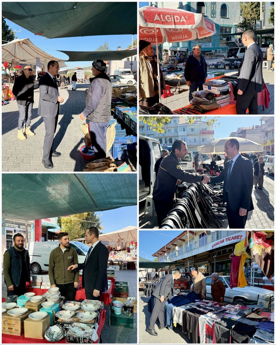 Gerçekleştirilen ziyarette halk pazarında esnafları tezgâhlarında ziyaret eden Kaymakam Özen, esnafları ile muhabbet ederek hayırlı işler temennisinde bulundu.