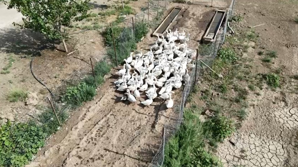 Meyve bahçelerinde yabani otla mücadelede kazlar sahaya indi