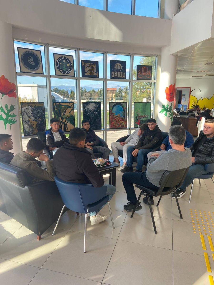 GSB Burdur Gençlik Merkezi Manevi Danışmanlığı, merkezi ziyaret eden Mesleki Eğitim Merkezi (MESEM) ağır vasıta, traktör, otomobil ve metal bölümlerinde eğitim gören öğrencilerle bir araya geldi. Öğrencilerle tanışan ekip, gençlerin eğitim gördükleri alanlar hakkında bilgi aldı.
