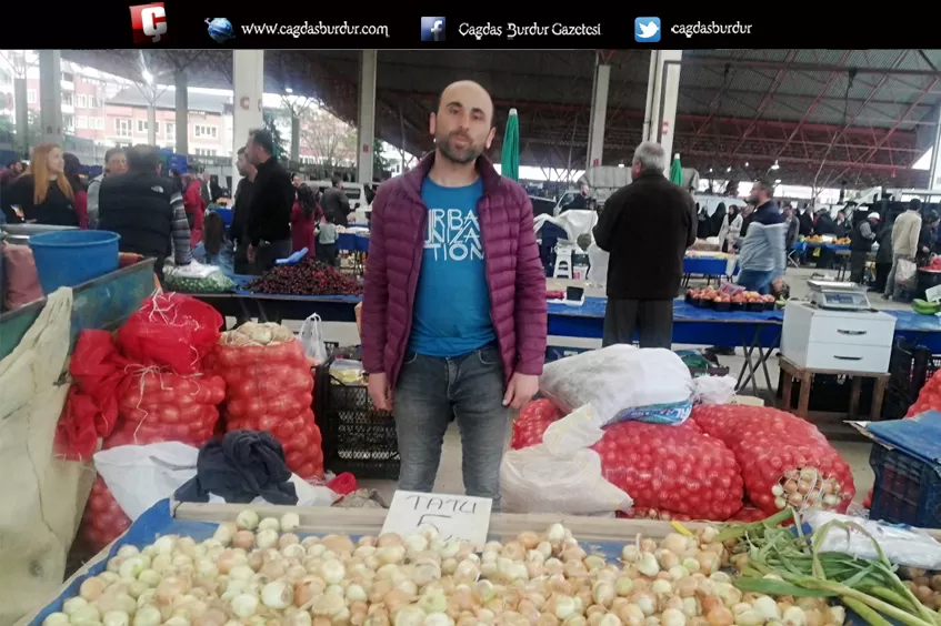 Burdur’da kilosu 20 liraya kadar yükselen kuru soğanın kilosu 5 liraya geriledi. Önceki Salı günü Uzay Çatı Halk Pazarında küçük boy kuru soğanın kilosu 5 lira, büyük boy kuru soğanın kilosu 10 liradan satıldı. Pazarda Çağdaş Burdur Gazetesi Muhabirimize röportaj veren pazarcı esnafı Mehmet Uysal; “Kuru soğan fiyatları düştü. Soğanlar Hatay’dan geliyor.” dedi.
