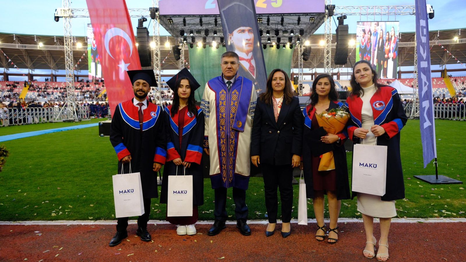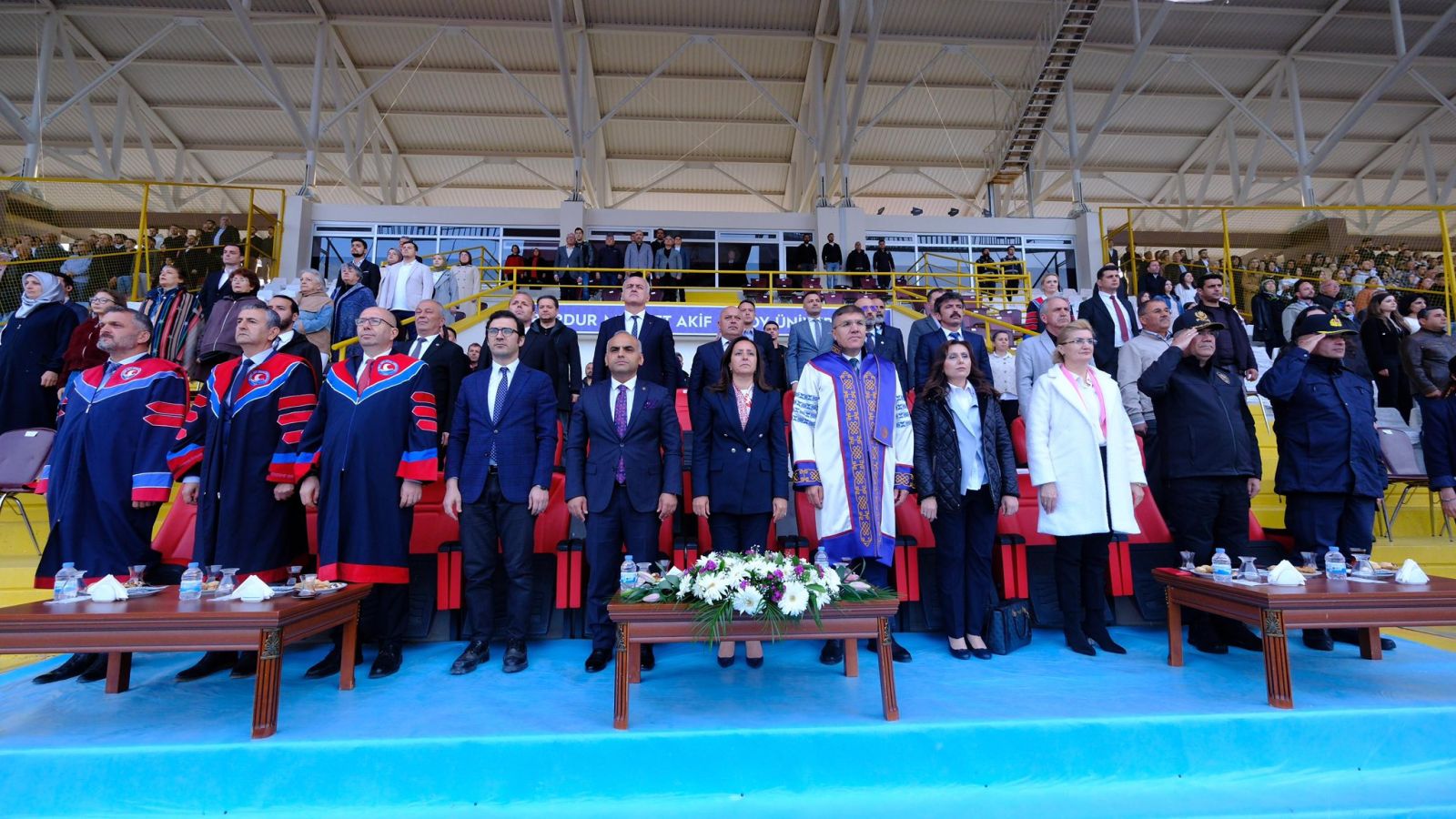 Üniversite kampüsünde gerçekleştirilen törende, Vali Baydar Bilgihan eğitim hayatlarında üstün başarı gösteren öğrencilere başarı belgelerini takdim etti. Mezun olan tüm öğrencilere seslenen Bilgihan, sağlık, mutluluk ve kariyerlerinde başarı dileklerinde bulundu.