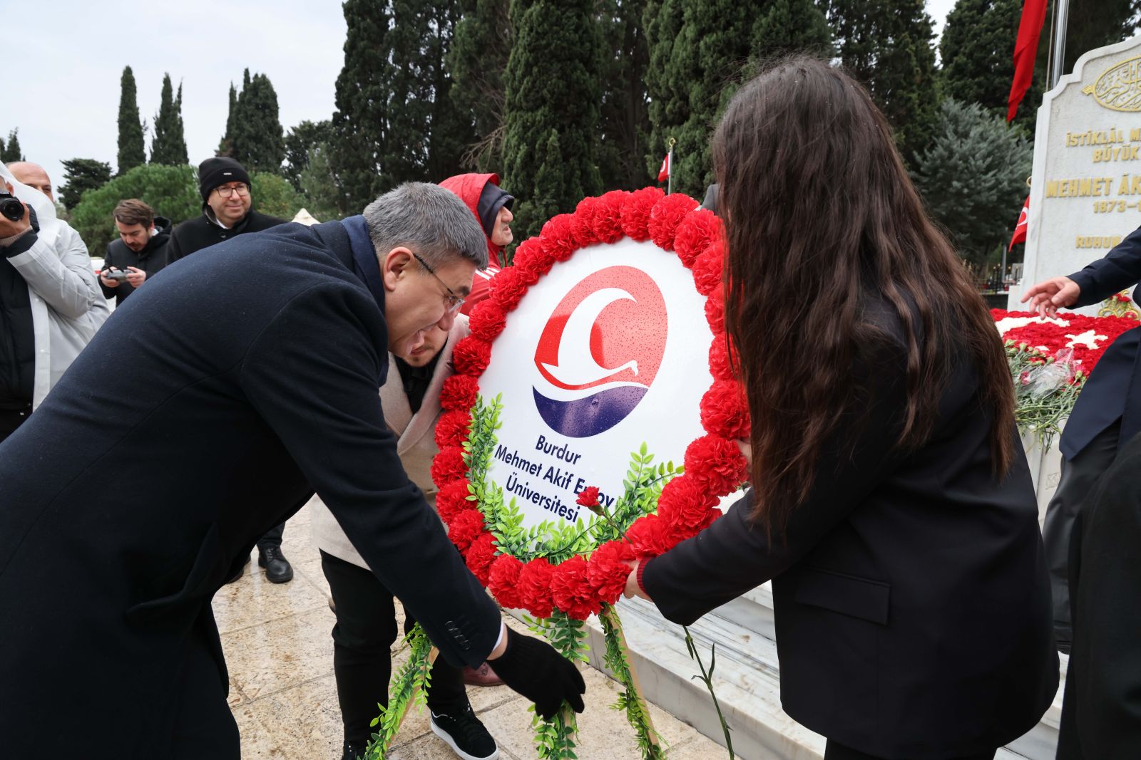 Anma programı, saygı duruşu ve İstiklal Marşı’nın okunmasıyla başladı. Ardından Mehmet Âkif Ersoy’un kabri başında dualar edildi. Tören kapsamında Mehmet Akif Ersoy Üniversitesi Rektörü Prof. Dr. Hüseyin Dalgar tarafından şairin kabrine çelenk sunuldu.