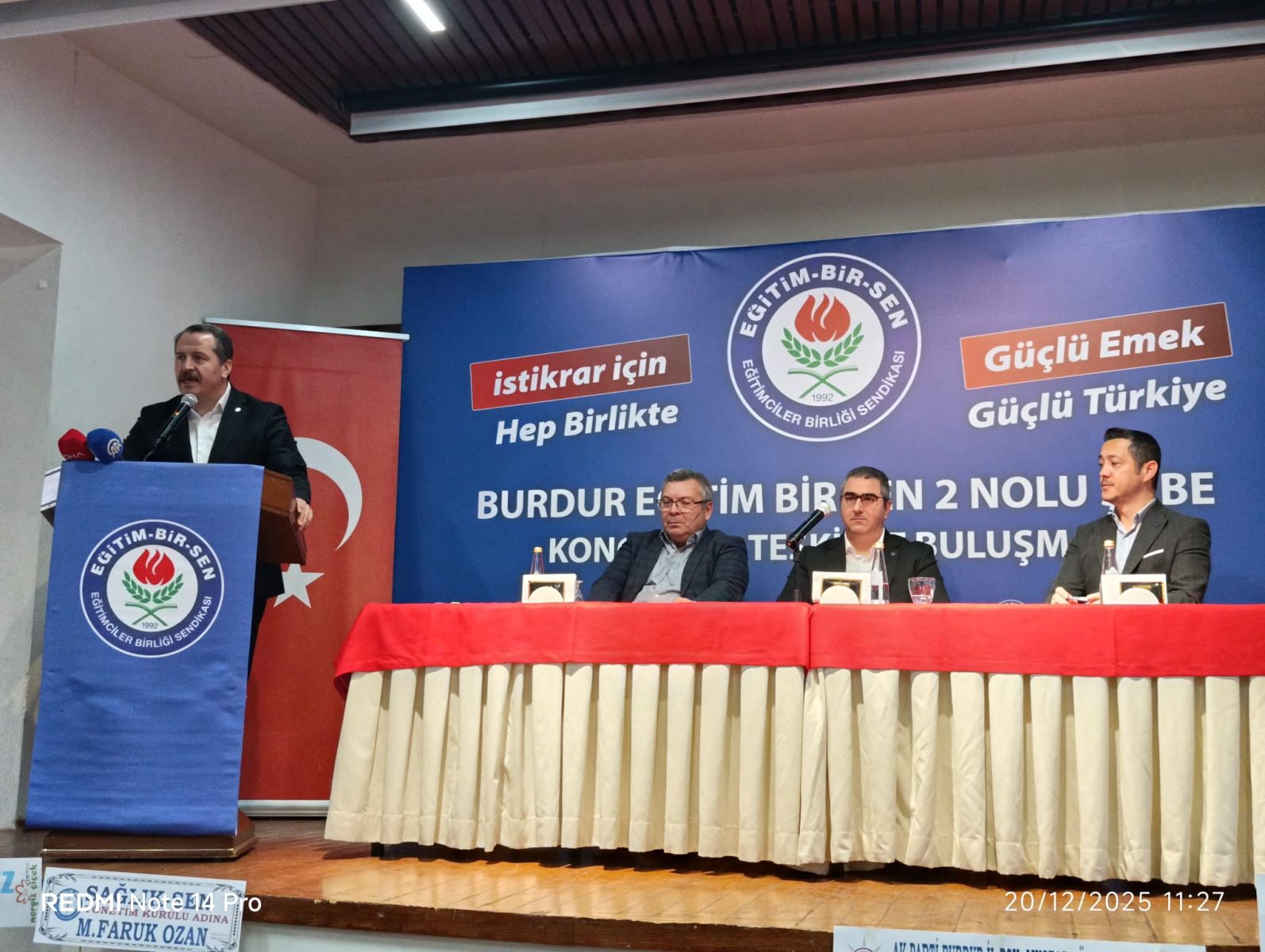 Memur Sen’e bağlı Eğitim Bir sen 2 nolu Şube Başkanlığı ilk kongresini Burdur Öğretmenevi Müdürlüğü İstasyon Caddesi Şubesi’nde 20 Aralık 2025 Cumartesi günü yaptı. Saat 09.30’da kahvaltı ile başlayan kongreye Memur Sen ve Eğitim Bir Sen Genel Başkanı Ali Yalçın’da katıldı. Burdur’daki Memur-Sen ve Eğitim Bir Sen teşkilatı ile buluşan genel başkan Yalçın, gelir adaleti ve ücret dengesinin sağlanması için kamu personel reformunun ihtiyaç olduğunu söyledi.