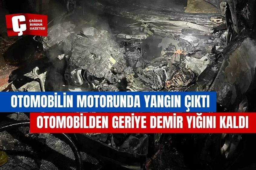 PARK HALİNDEKİ OTOMOBİLİN MOTORU ALEV ALDI, GERİYE DEMİR YIĞINI KALDI