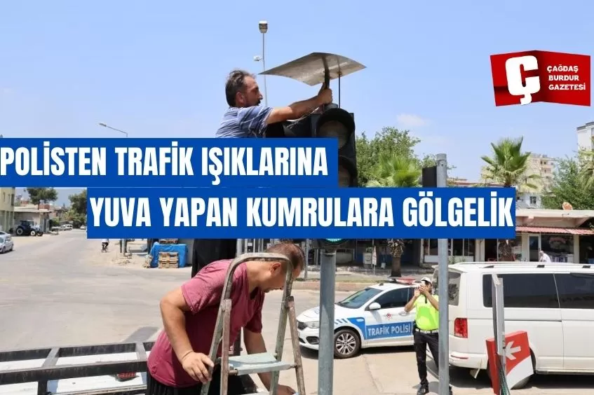POLİSTEN TRAFİK IŞIKLARINA YUVA YAPAN KUMRULARA GÖLGELİK