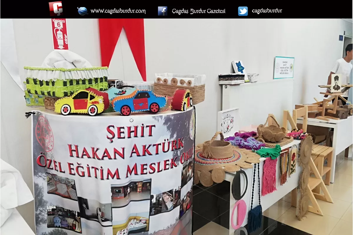Burdur İl Millî Eğitim Müdürlüğü Şehit Hakan Aktürk Özel Eğitim Meslek Okulu öğrencileri öğretmenleri eşliğinde yaptığı el sanatları sergisi açtı.
