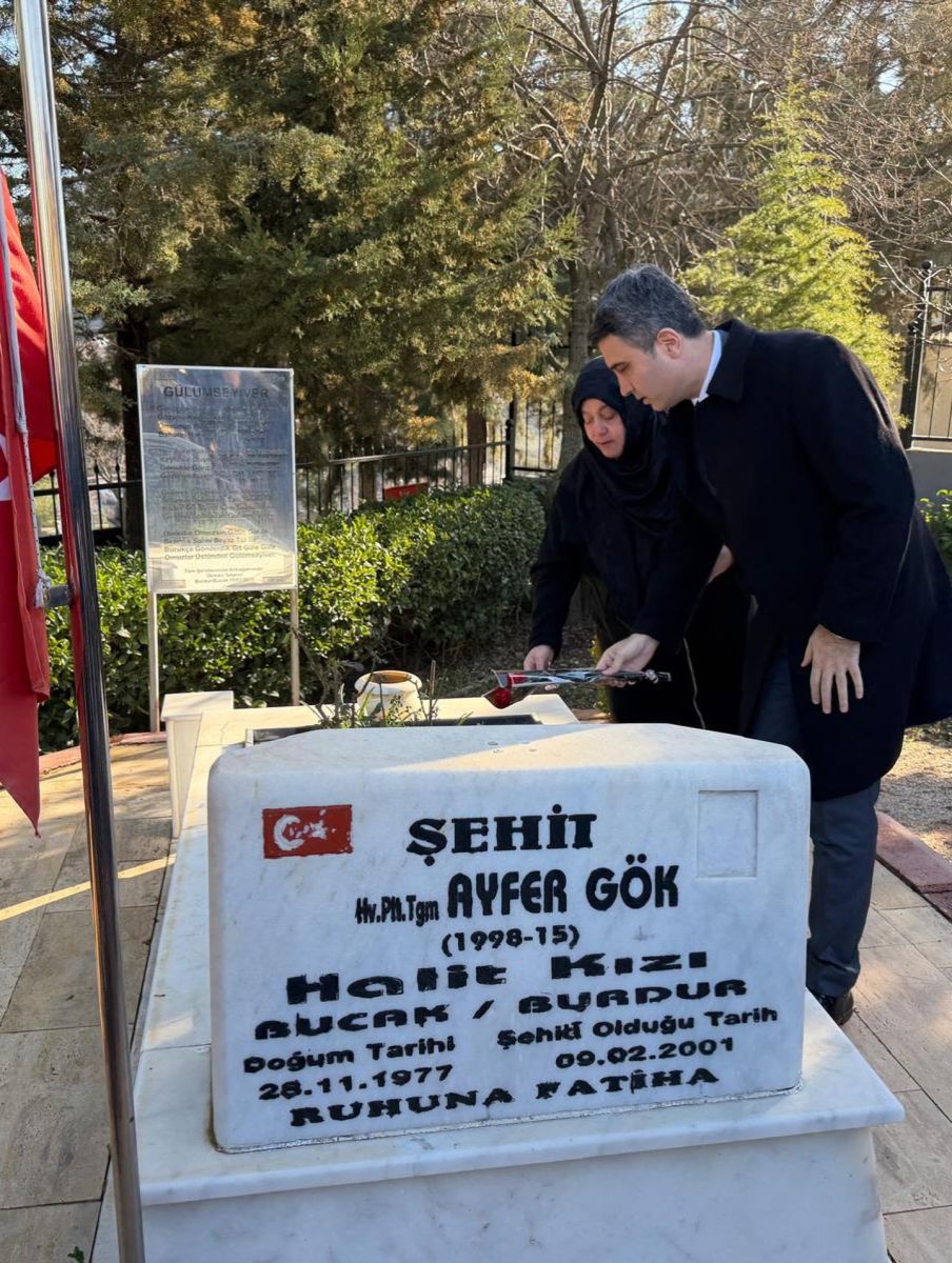 Programa katılan Bucak Kaymakamı Can Kazım Kuruca, Şehit Pilot Teğmen Ayfer Gök başta olmak üzere şehitlikte bulunan tüm aziz şehitlerin mezarlarını ziyaret ederek dua etti.