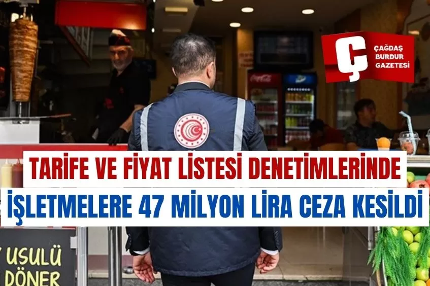 TARİFE VE FİYAT LİSTESİ DENETİMLERİNDE İŞLETMELERE 47 MİLYON LİRA CEZA KESİLDİ