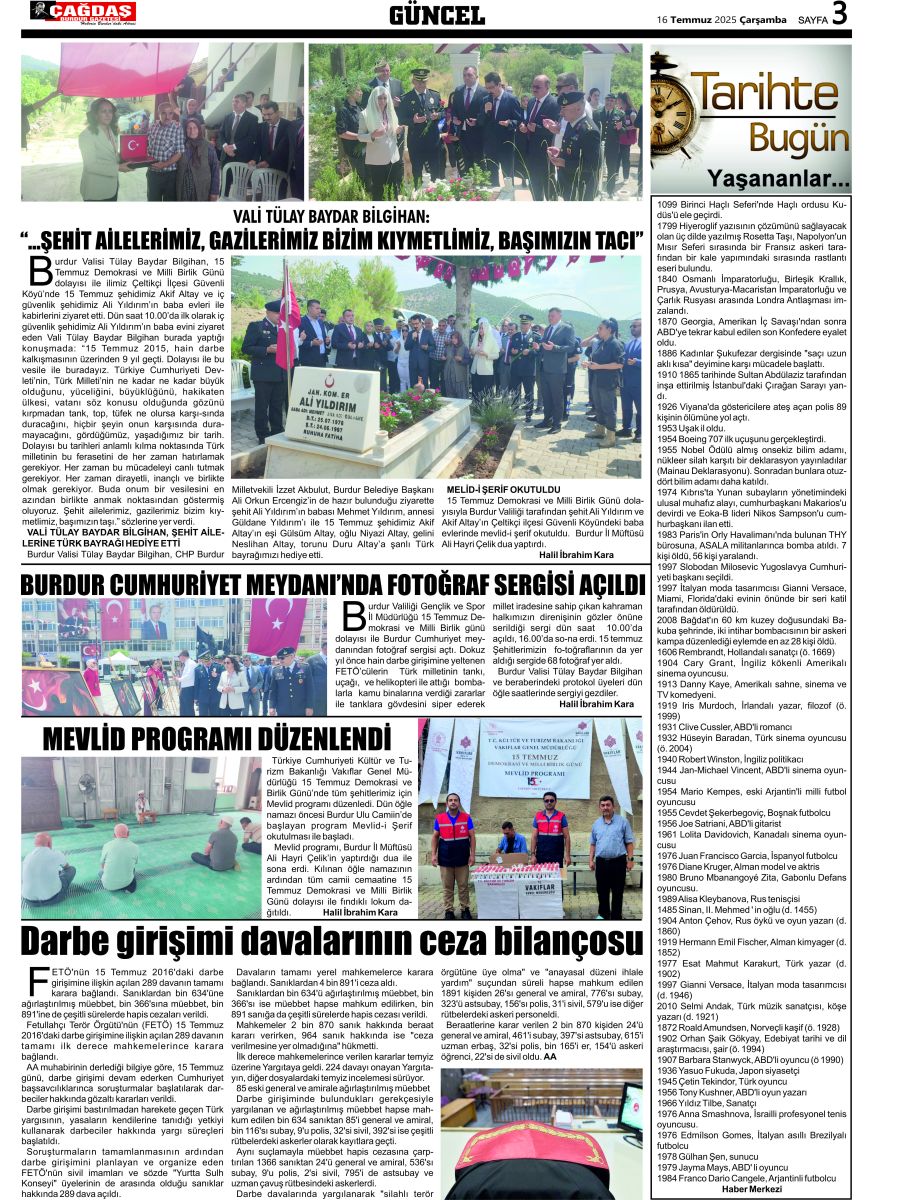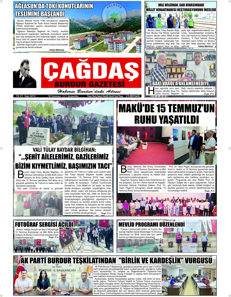 16 TEMMUZ 2025 ÇARŞAMBA TARİHLİ GAZETE