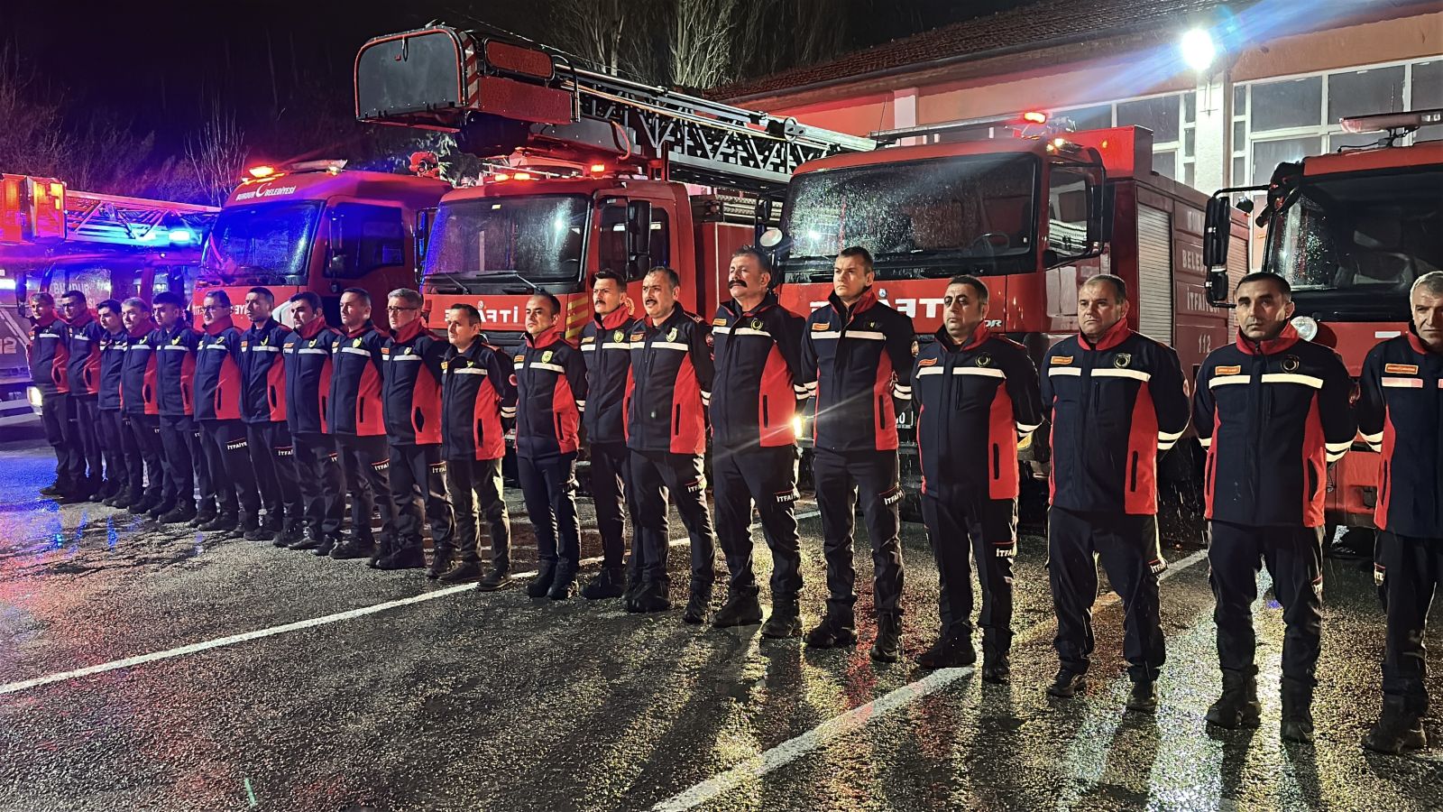 Soğuk havaya rağmen toplanan itfaiye personeli, saatler 04.17'yi gösterdiğinde siren çalarak 2 dakika saygı duruşunda bulunarak hayatını kaybeden depremzedeleri andı.