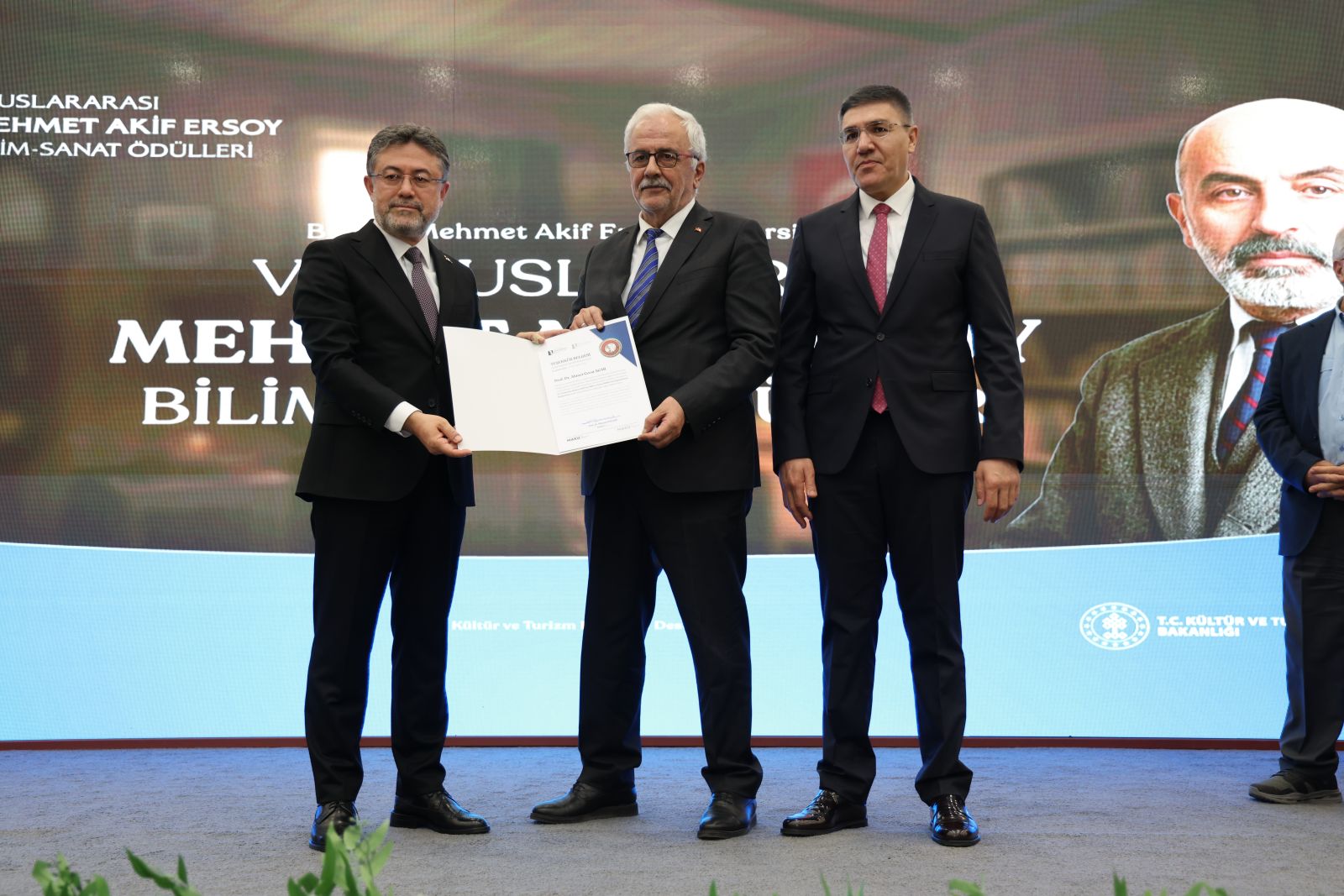 Uluslararası Mehmet Akif Ersoy Meslekte Başarı Ödülü, Makine Mühendisi ve TEİ Genel Müdürü Prof. Yalçın Çetinkaya’ya takdim edildi.