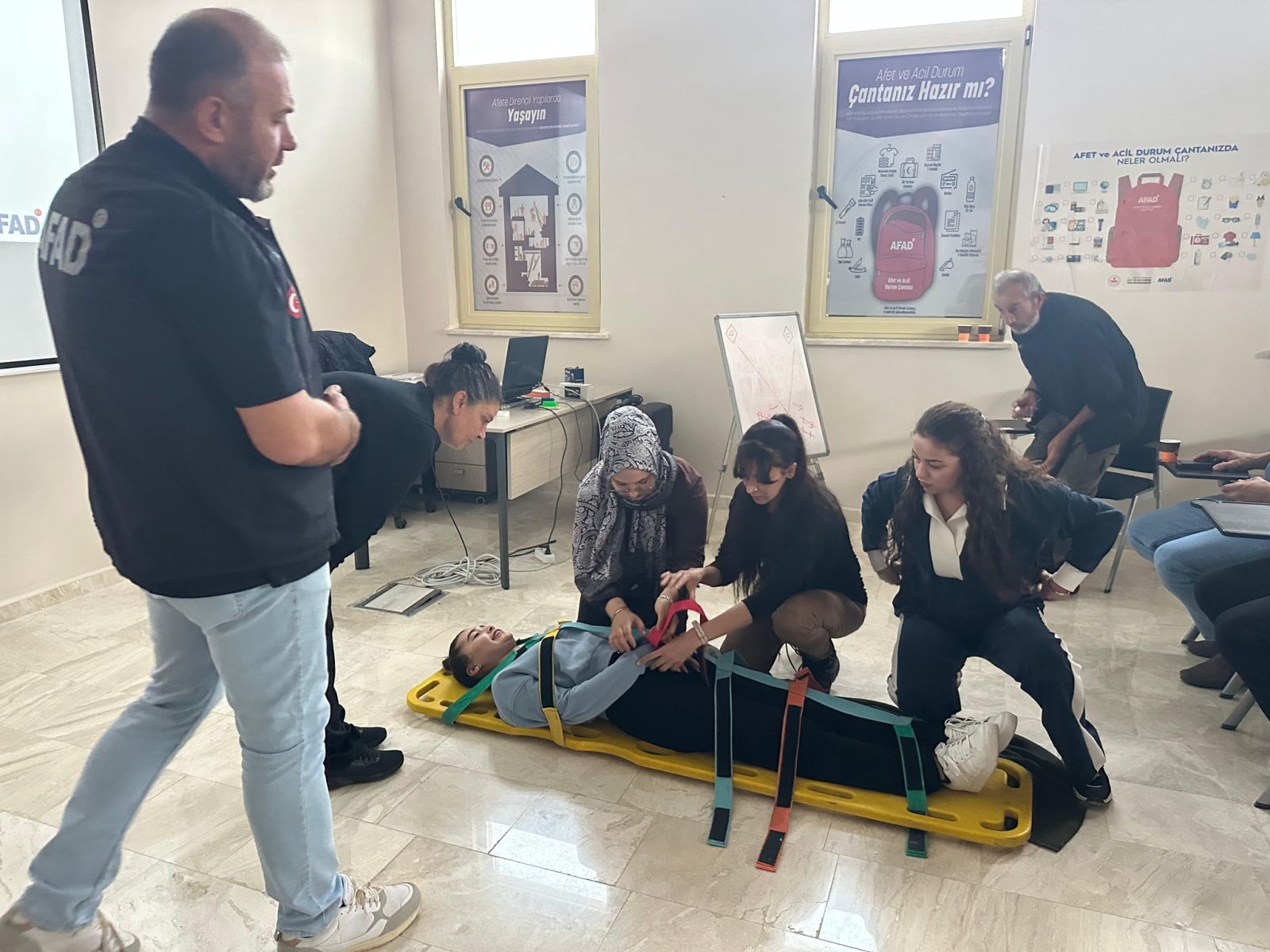 Ayrıca eğitimde, Yangın Farkındalığı, çadır kurulumu ve afet durumlarında alınacak önlemler gibi konularda da kapsamlı bilgiler paylaşıldı.
