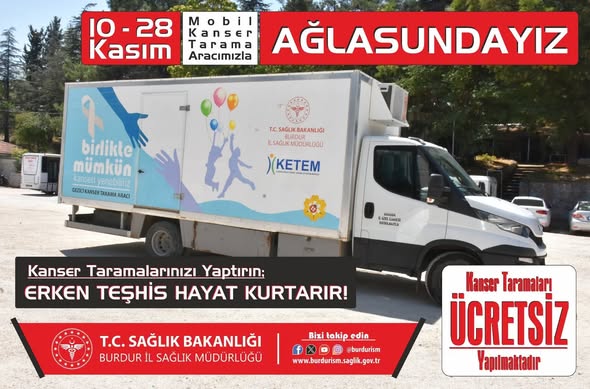 Burdur İl Sağlık Müdürlüğü’ne bağlı Kanser Erken Teşhis, Tarama ve Eğitim Merkezi (KETEM) tarafından, Mobil Mamografi ve Serviks Kanseri Tarama Aracı ile ücretsiz kanser taramaları gerçekleştirilecek.
