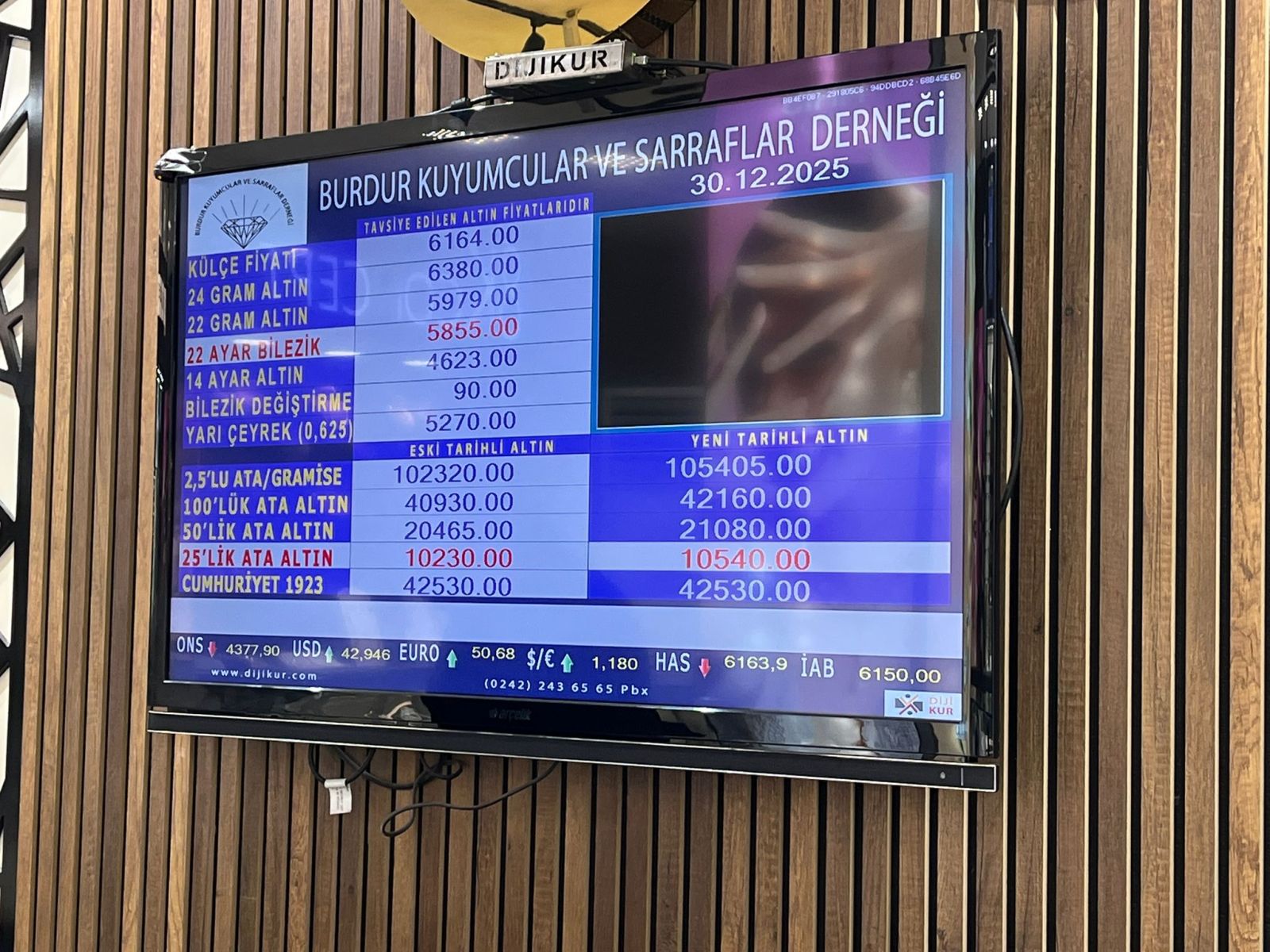 Burdur Kuyumcular ve Sarraflar Derneği tarafından 30 Aralık 2025 Salı günü saat 09.00 itibarıyla güncel altın fiyatları şu şekilde: