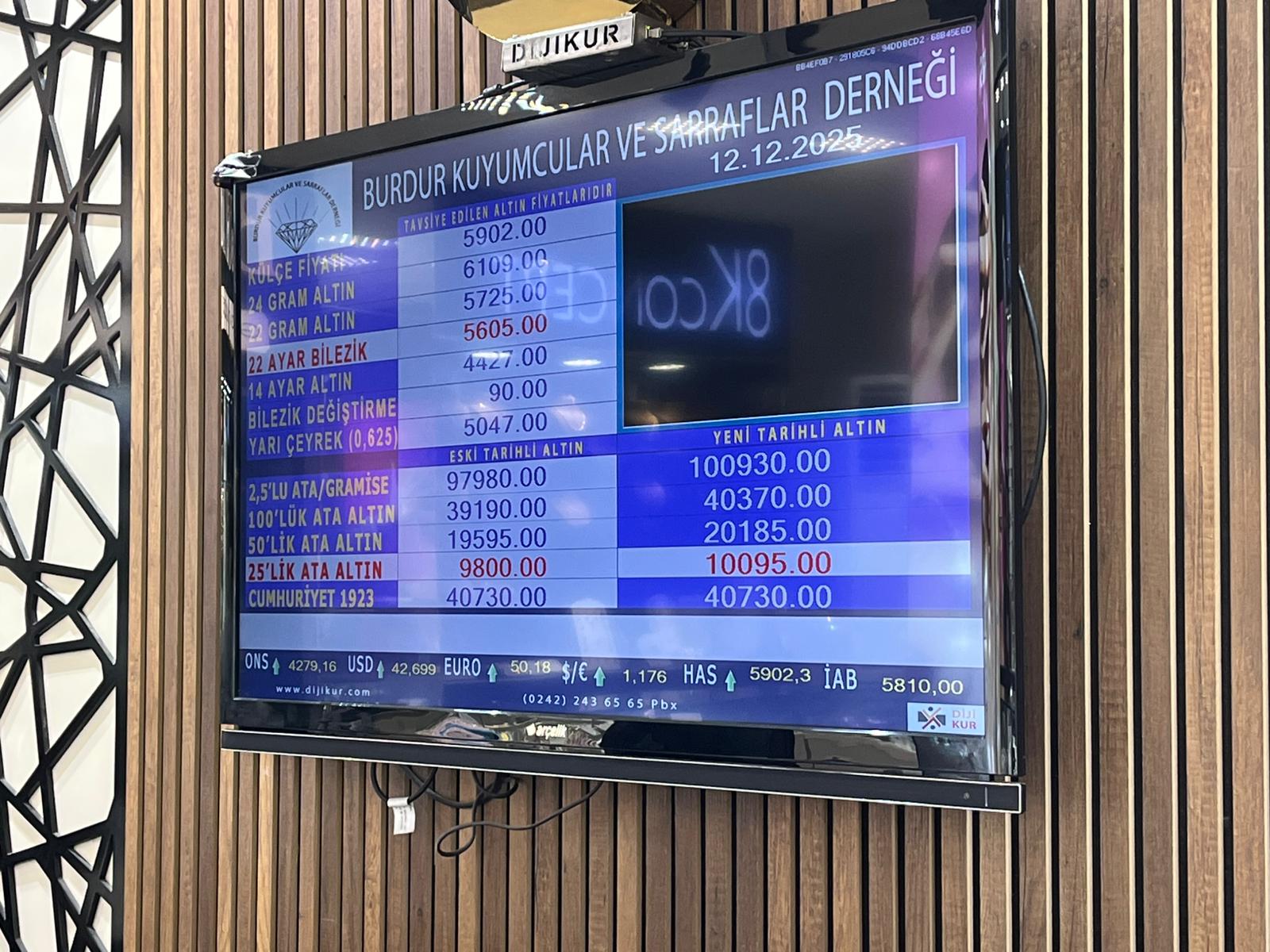 Burdur Kuyumcular ve Sarraflar Derneği tarafından 12 Aralık 2025 Cuma günü saat 09.00 itibarıyla güncel altın fiyatları şu şekilde: