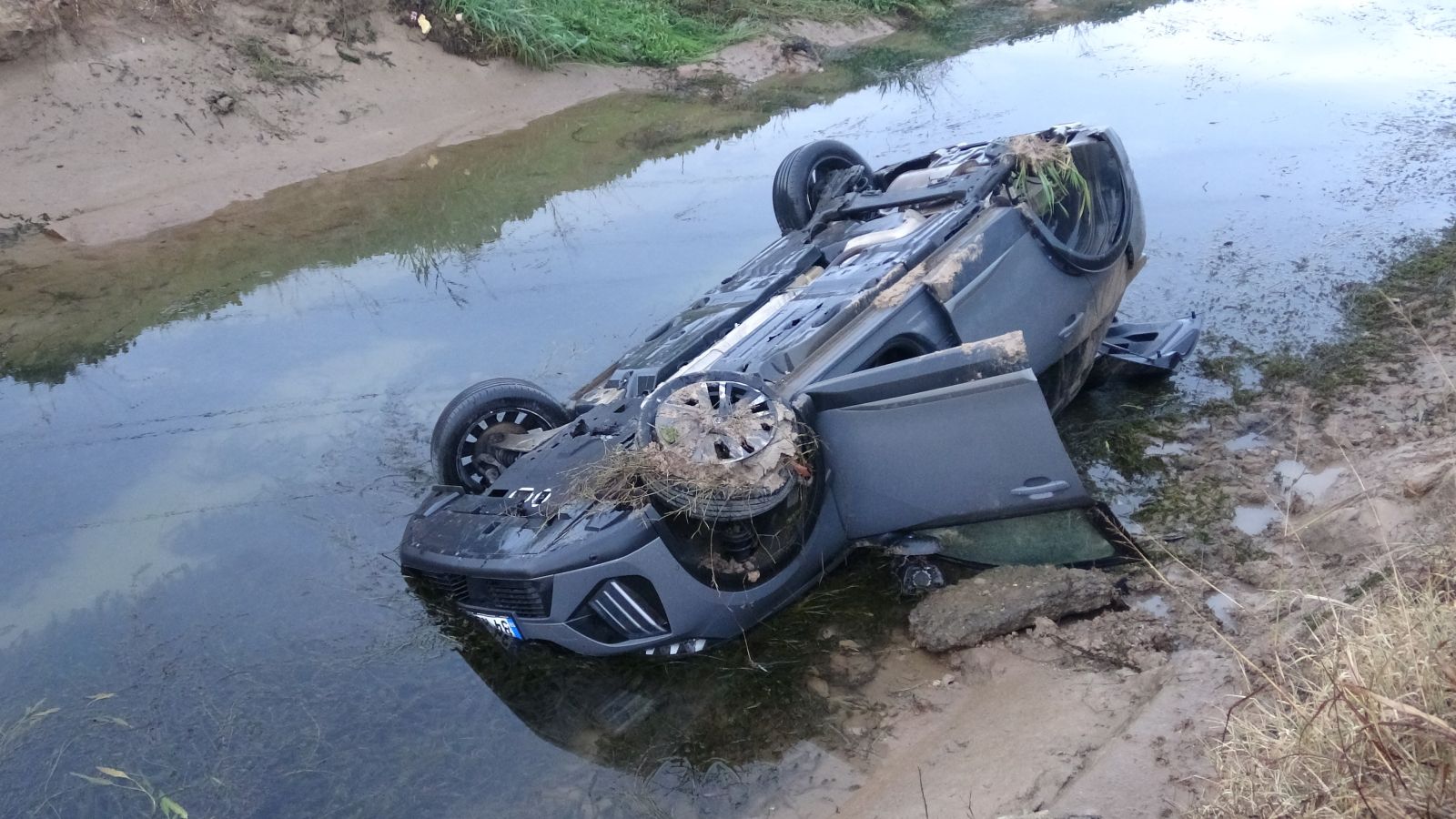Kayganlaşan yolda kontrolden çıkan araç kanala uçtu