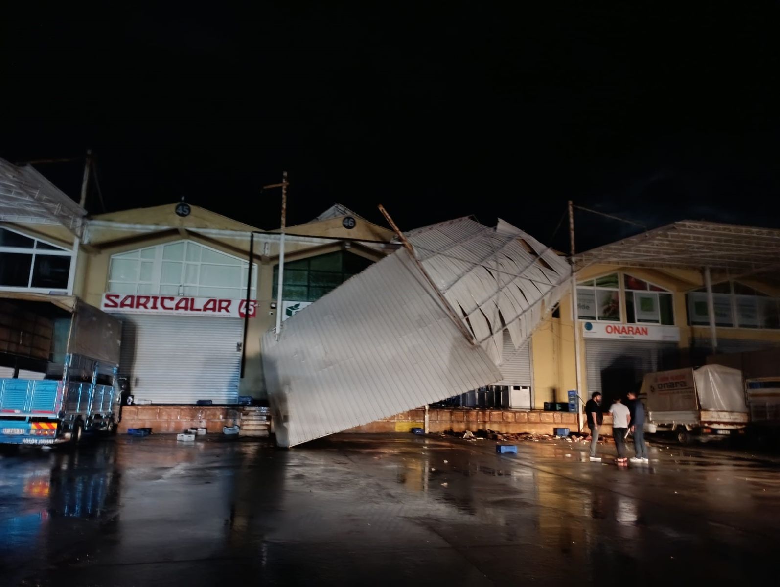 Antalya'nın Demre ilçesinde meydana gelen hortum nedeniyle toptancı halindeki bir işyerinin çatısı zarar gördü, Kaş ilçesinde de sağanak etkili oldu.