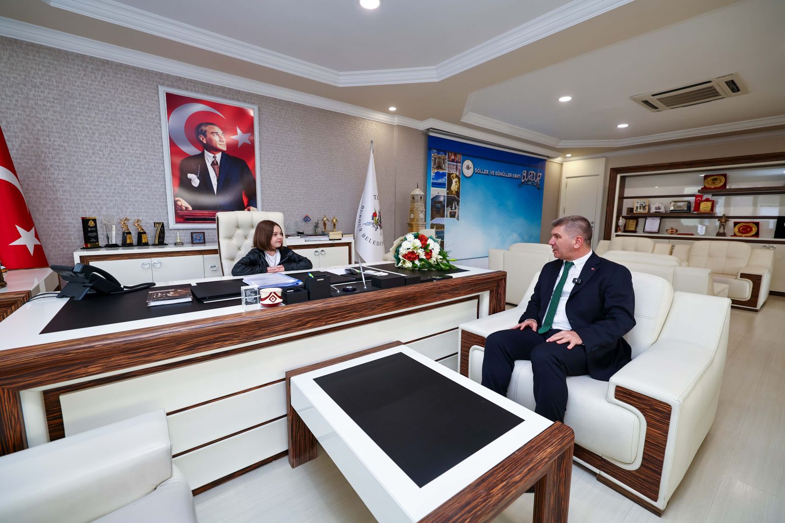 23 Nisan Ulusal Egemenlik ve Çocuk Bayramı dolayısıyla Burdur Belediye Başkanı Ali Orkun Ercengiz, makamını bir günlüğüne öğrenci Ayşe Sena Pala’ya devretti.