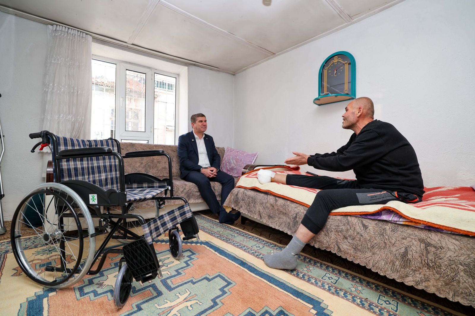 Burdur Belediye Başkanı Ali Orkun Ercengiz, diyabete bağlı rahatsızlığı nedeniyle ayak bileğini kaybeden ve uzun yıllar Burdur Belediyesi Temizlik İşleri Müdürlüğü bünyesinde görev yapan emekli personel Hasan Atik’i, Zafer Mahallesi’ndeki evinde ziyaret etti.