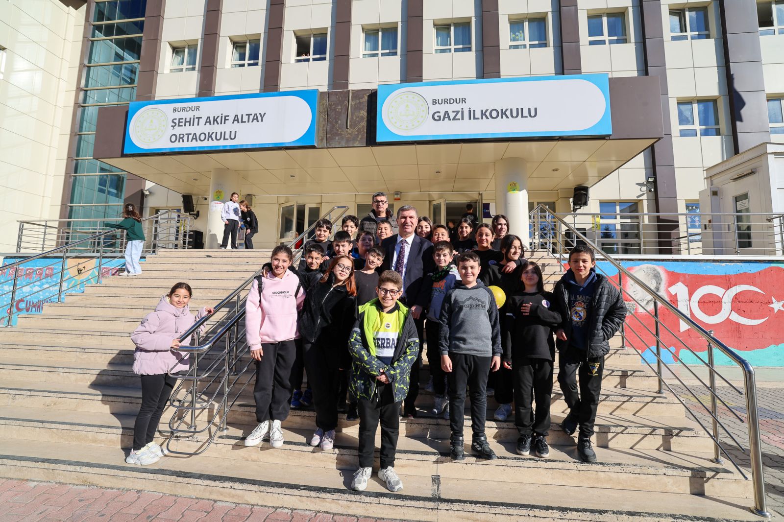Burdur Belediye Başkanı Ali Orkun Ercengiz, Şehit Akif Altay Ortaokulu 5-F ve 7-C sınıfı öğrencilerinin davetini geri çevirmedi. Yerli Malı Haftası kapsamında öğrencilerle bir araya gelen Başkan Ercengiz, yerli üretimin önemi üzerine sohbet ederek öğrencilerin merak ettiği soruları yanıtladı.