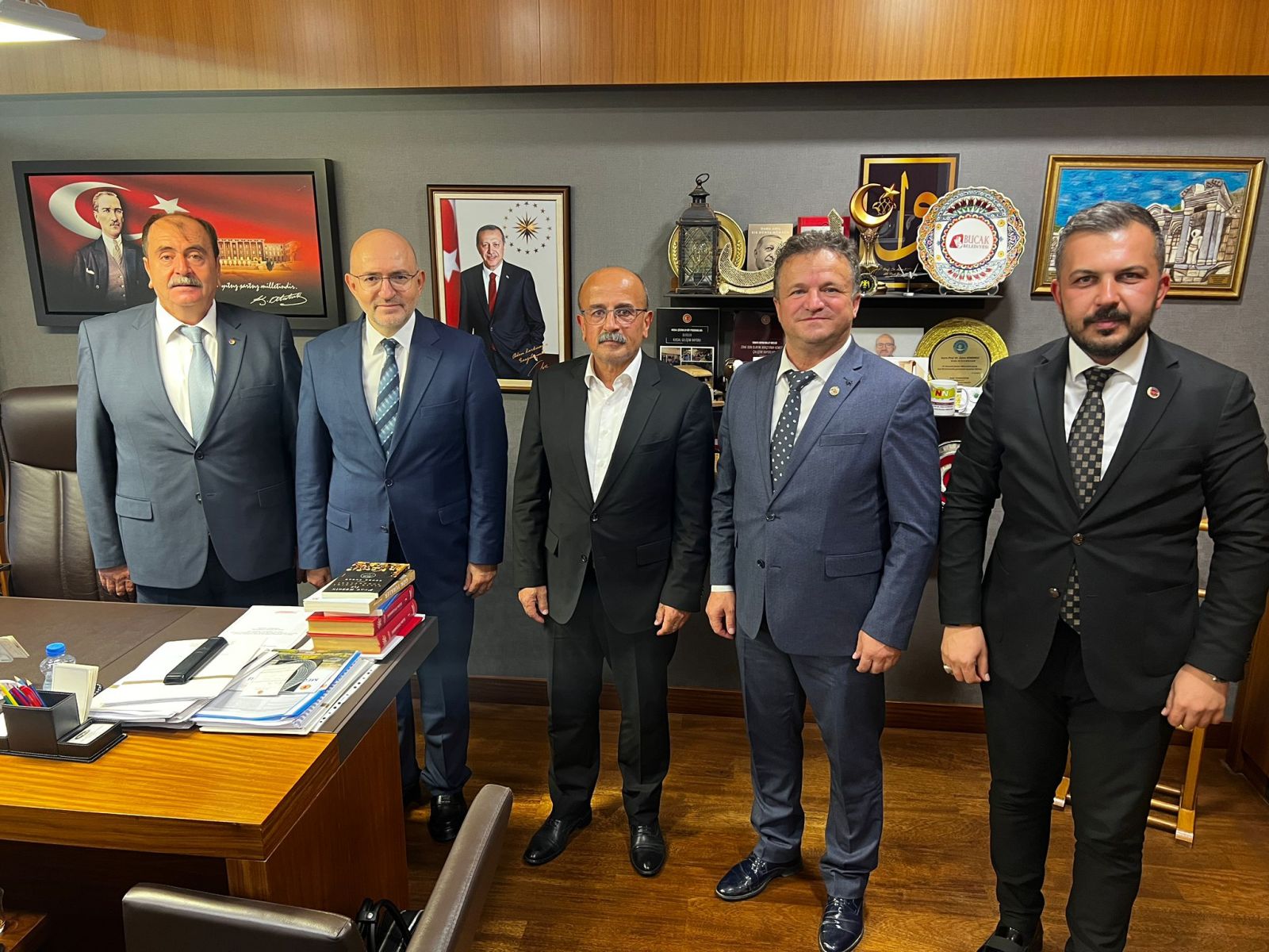 Ziyarette Başkan Meçikoğlu’na, Karamanlı Belediye Başkanı Fatih Selimoğlu, Kemer Belediye Başkanı İsmail Asan, Kocaaliler Belediye Başkanı İlyas Delen de eşlik etti.