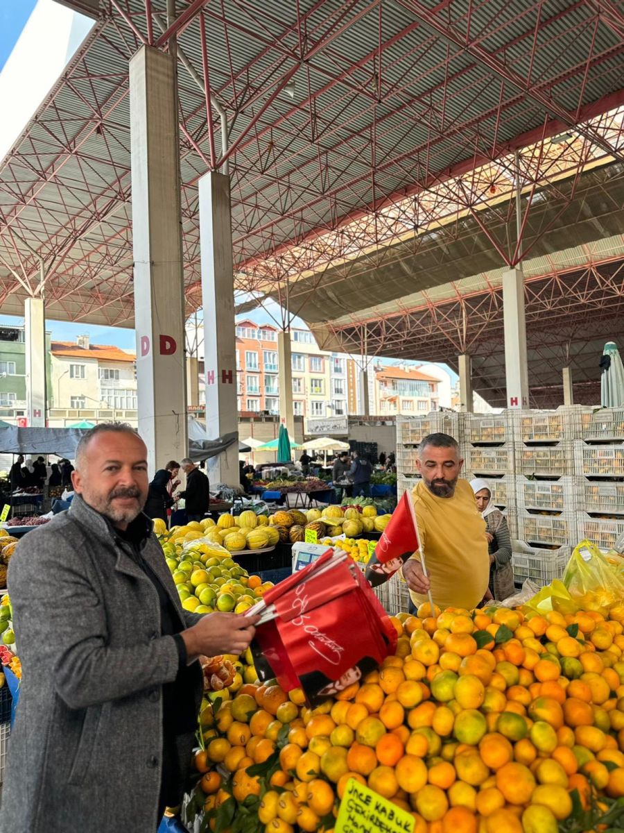 Burdur Manavlar ev Sebzeciler Odası Başkanı Tuncay Yiğit, 29 Ekim Cumhuriyet Bayramı dolayısı ile odaya kayıtlı manav esnafına şanlı Türk Bayrağımızı dağıttı. Cumhuriyet bayramı arifesinde (bugün) kurulan halk pazarında tezgah açan Pazar esnafını tek tek dolaşıp Cumhuriyet Bayramını kutlayan Başkan Yiğit, Türk Bayrağımızı hediye etti.