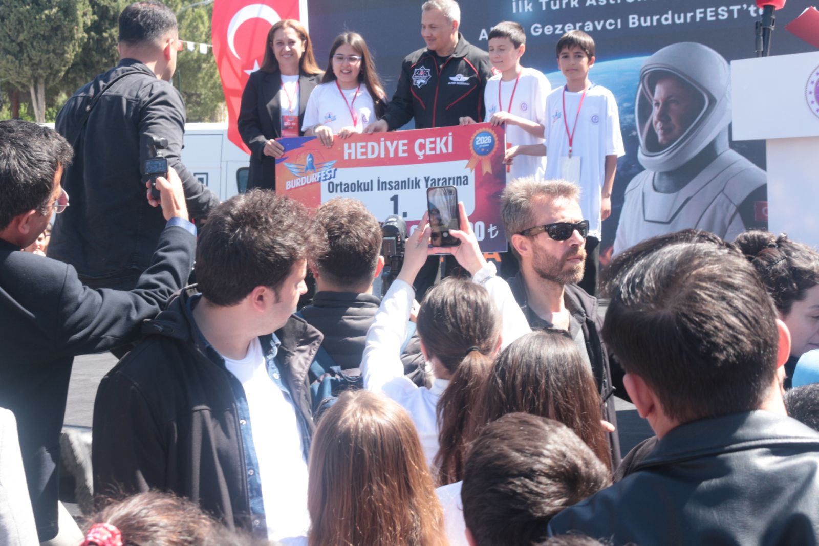 Burdurfest’te dereceye elde eden proje sahiplerine ödülleri Burdur Vali Yardımcısı Ökkeş Furkan Karakurt, Türkiye’nin ilk astronotu Alper Gezeravcı tarafından verildi.