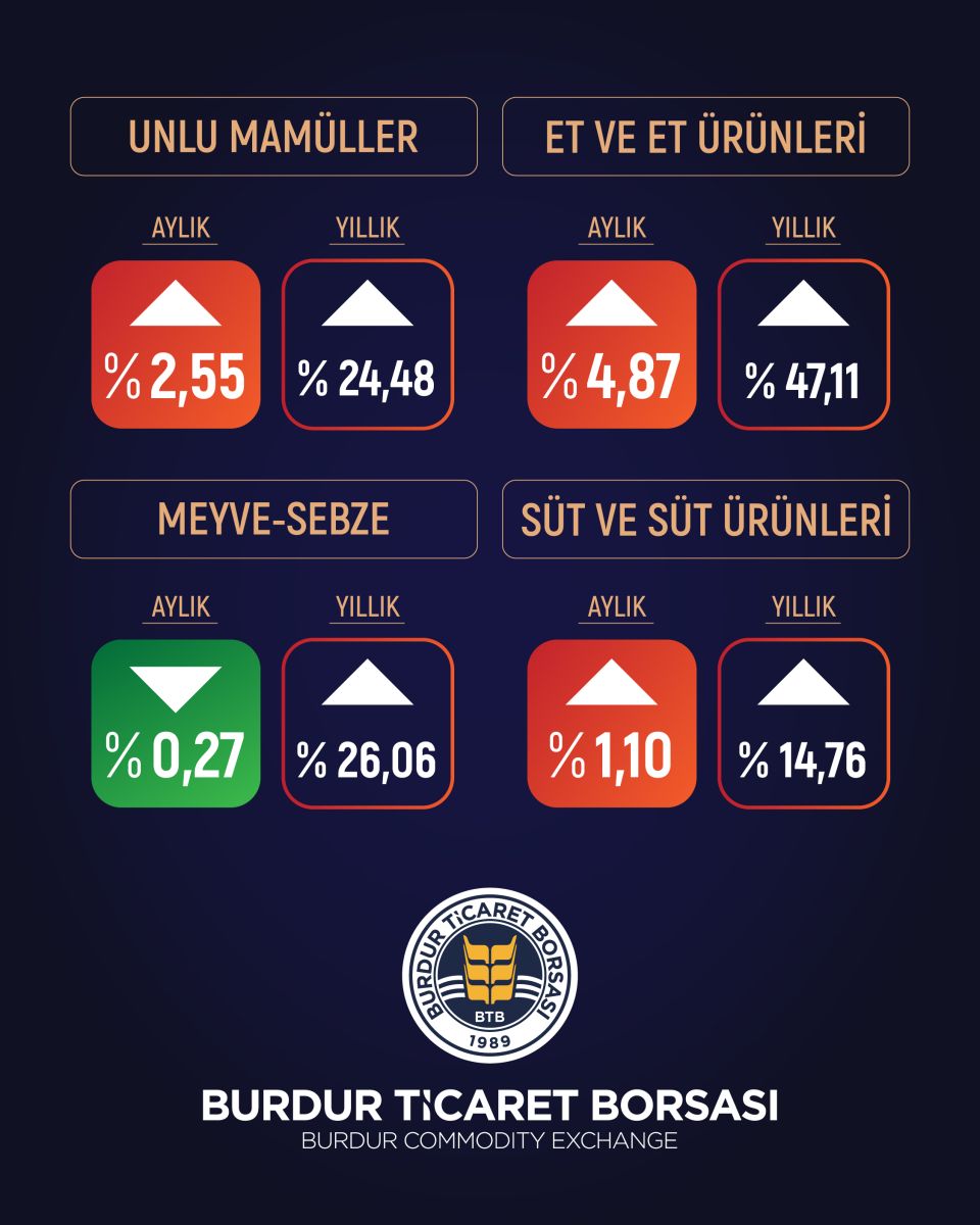 Burdur Ticaret Borsası tarafından hazırlanan Yerel Tüketici Gıda Fiyat Endeksi sonuçlarına göre, Burdur’da gıda fiyatları Şubat ayında %2,49 oranında artış gösterdi. Bir önceki yılın aynı ayına göre gıda fiyatlarının %44,06 oranında yükseldiği tespit edildi.