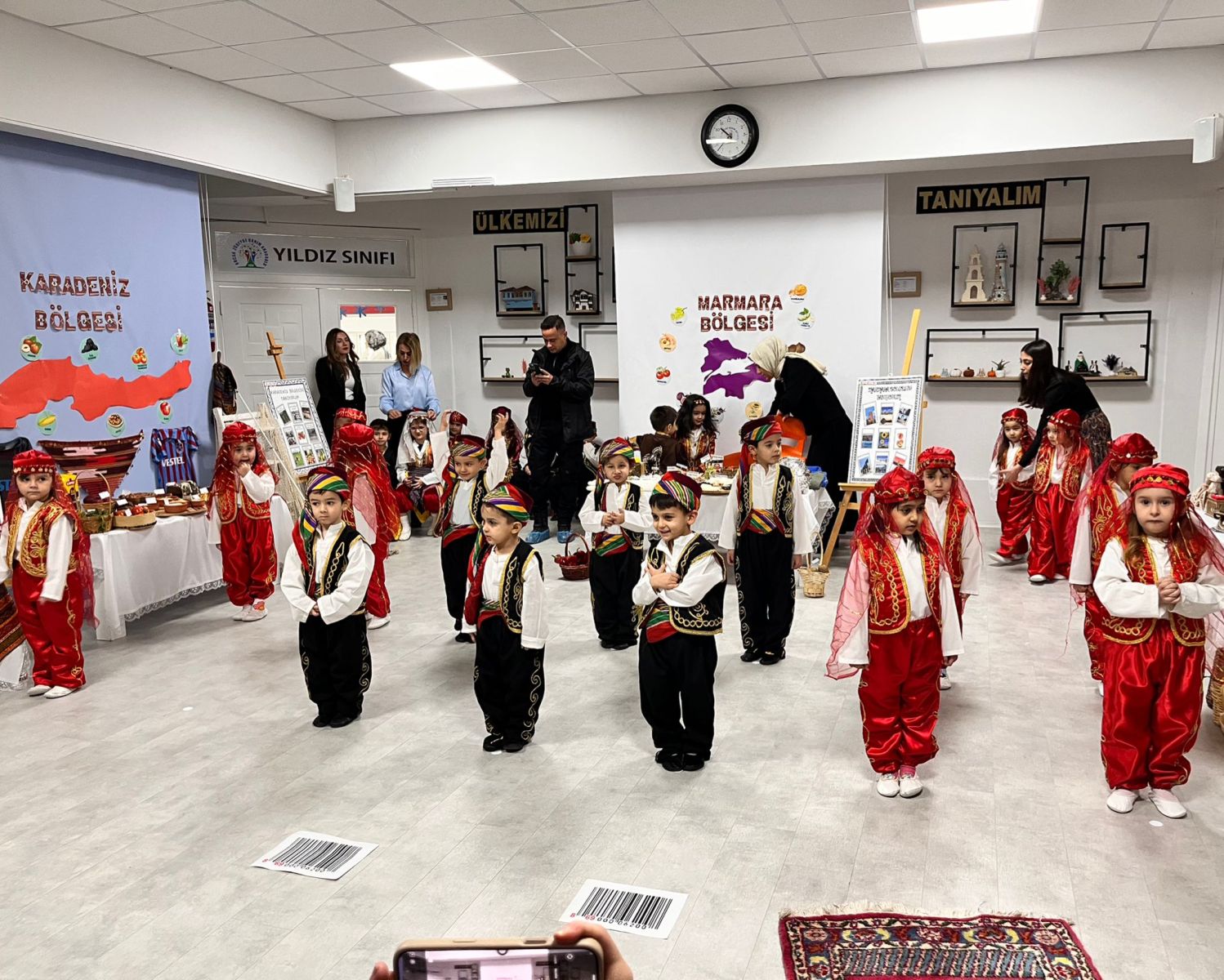 Türkiye'nin bölgelerinin tanıtıldığı etkinlikte, öğrenciler halk oyunları gösterisi sergiledi.