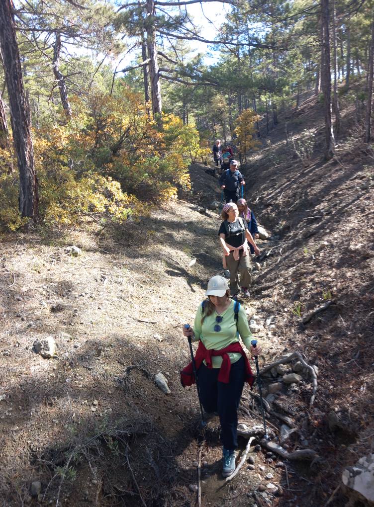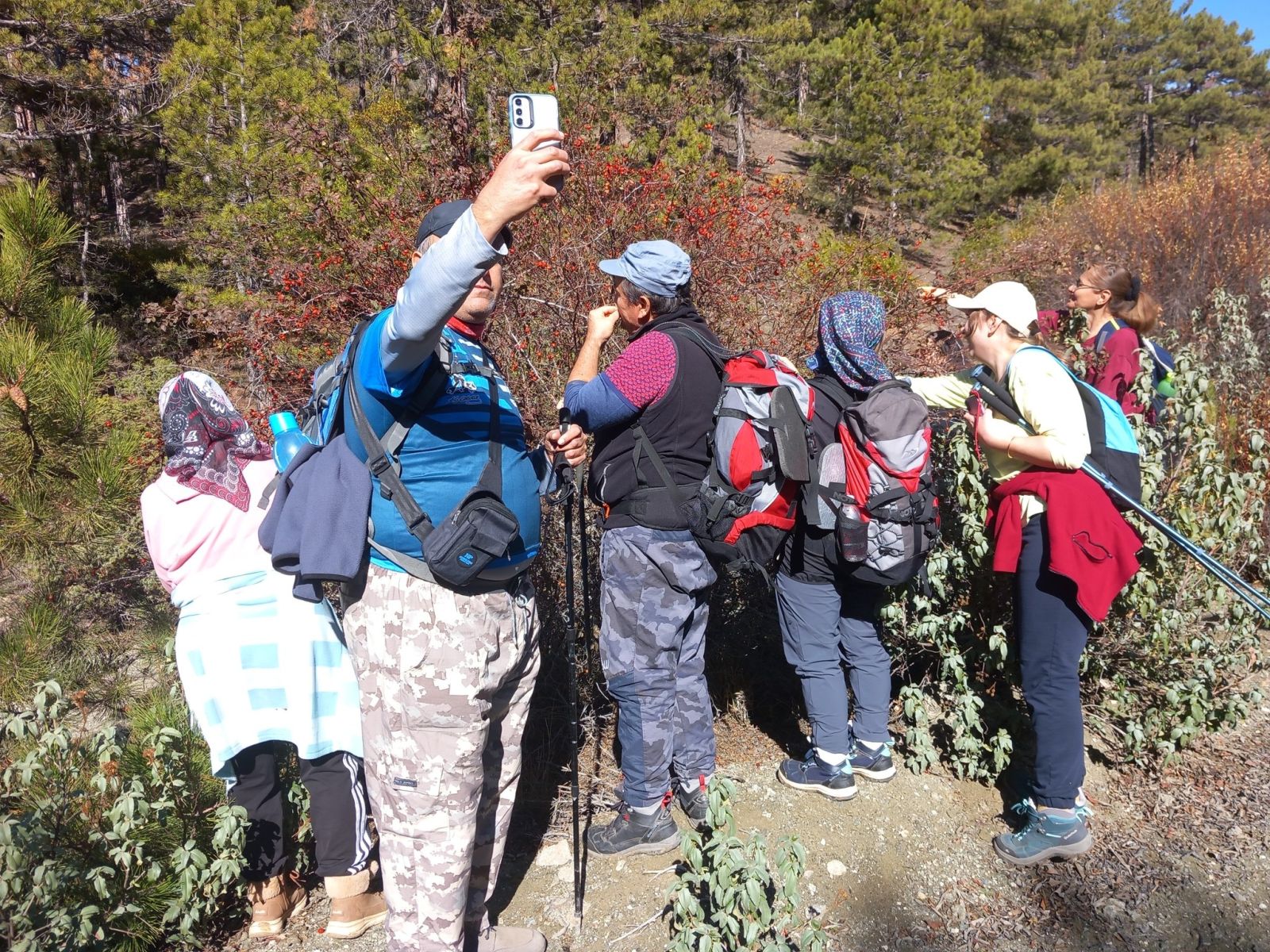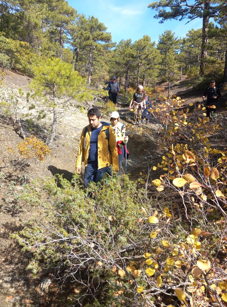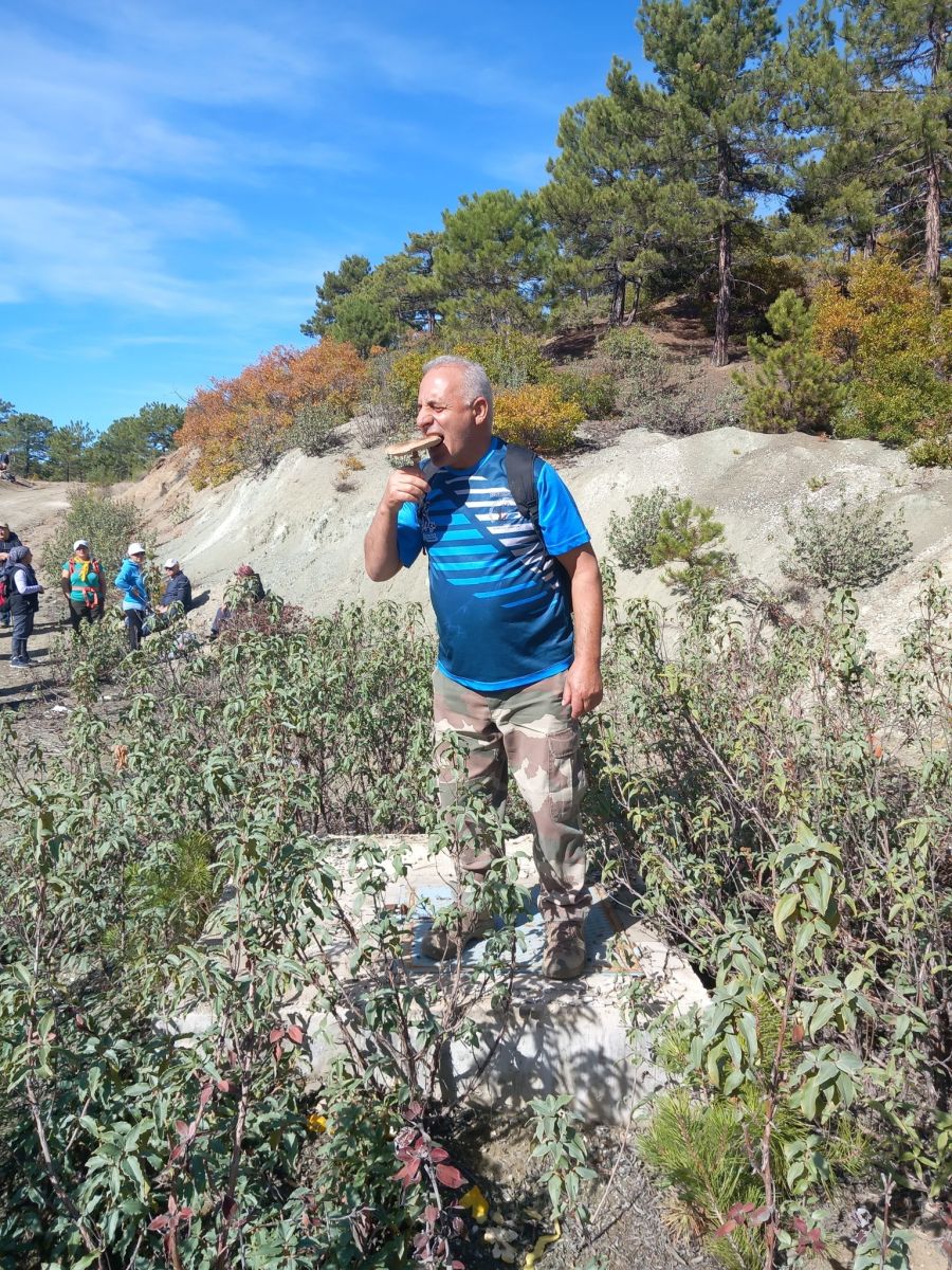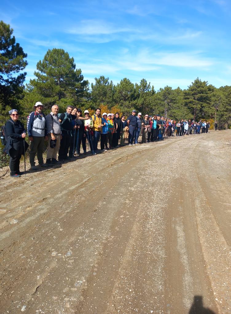 Katılımcılar, orman içi patikalardan ilerleyerek Bezirgan Deresi’ne ulaştı. Çam ağaçlarının ilkbahar yeşilliğiyle, kavak ve çınarların sonbahar sarısının iç içe geçtiği doğa manzarası yürüyüşe eşsiz bir atmosfer kattı. Gürül gürül akan Bezirgan Deresi’nin sesi, doğanın senfonisine ayrı bir güzellik kazandırdı.
