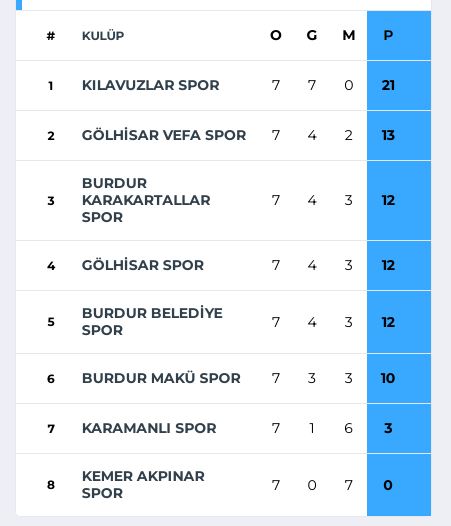 “25 Ocak 2026 Pazar saat 15.00 Burdur MAKÜ Spor – Gölhisar Spor saat: 15.00 Burdur Gazi Atatürk Stadyumu”