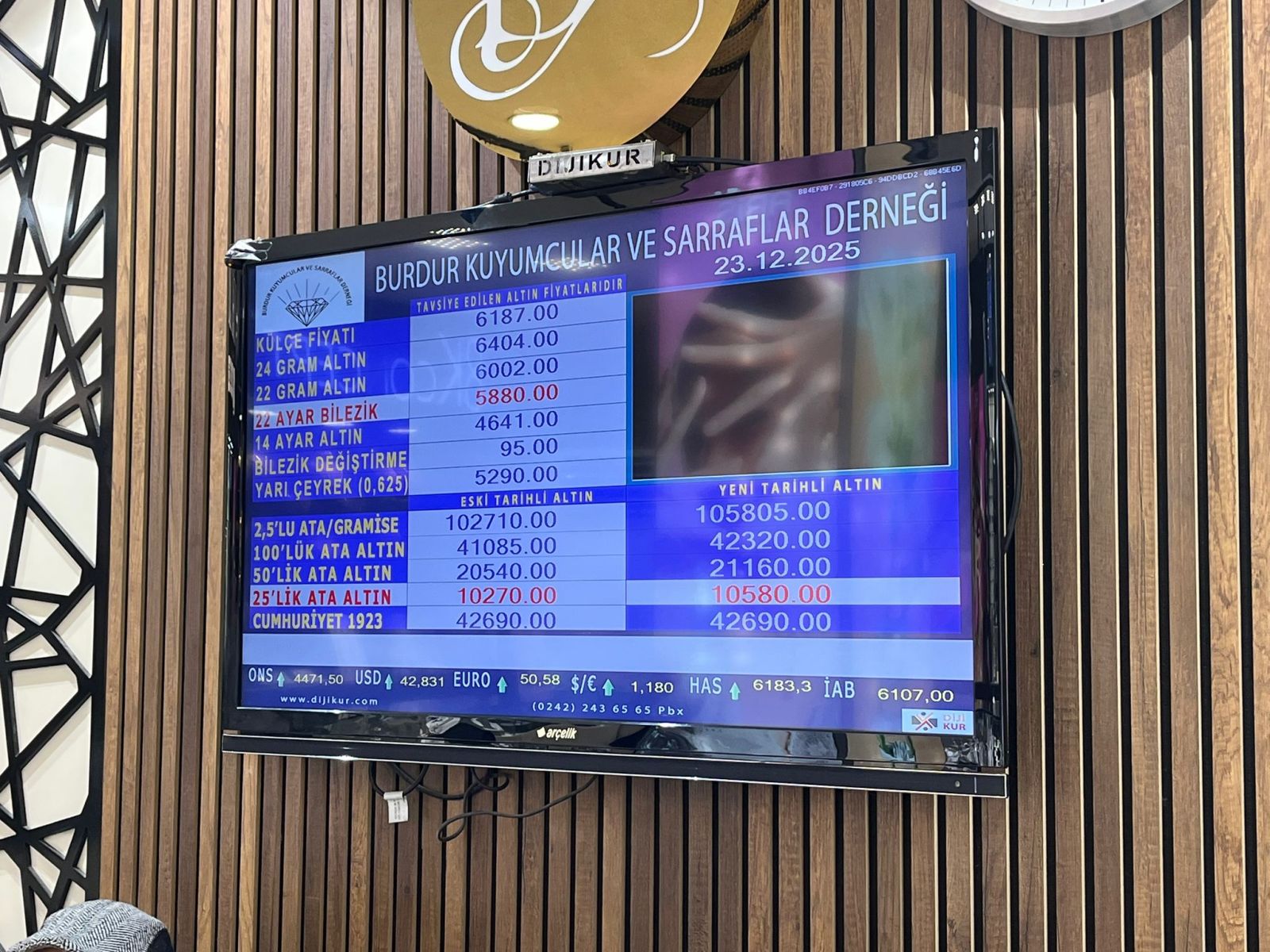 Burdur Kuyumcular ve Sarraflar Derneği tarafından 23 Aralık 2025 Salı günü saat 09.00 itibarıyla güncel altın fiyatları şu şekilde: