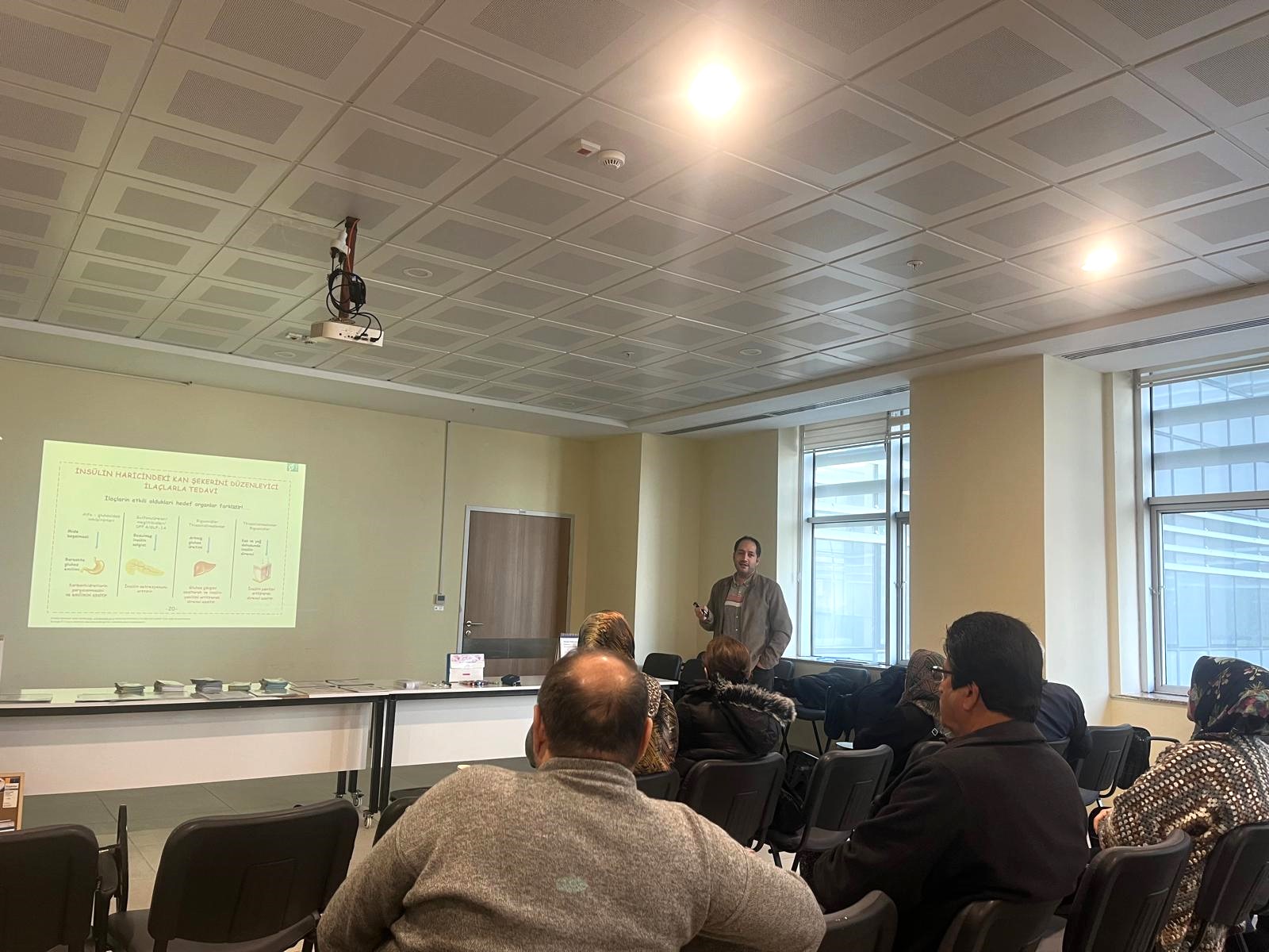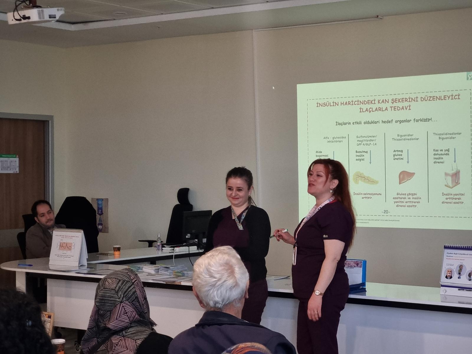 Toplumda diyabet denince akla gelen “şeker hastalığı, insülin iğnesi, diyet kısıtlaması, kan şekeri ölçümü” gibi kavramların ötesinde; diyabetin kronik ve dikkatle yönetilmesi gereken bir metabolik hastalık olduğu vurgulandı. Eğitimde ayrıca yüksek kan şekeri (hiperglisemi), insülin direnci, Tip 1 ve Tip 2 diyabet ile diyabetin kalp-damar, böbrek, göz ve sinir sistemi üzerindeki olası etkileri hakkında detaylı bilgiler paylaşıldı.