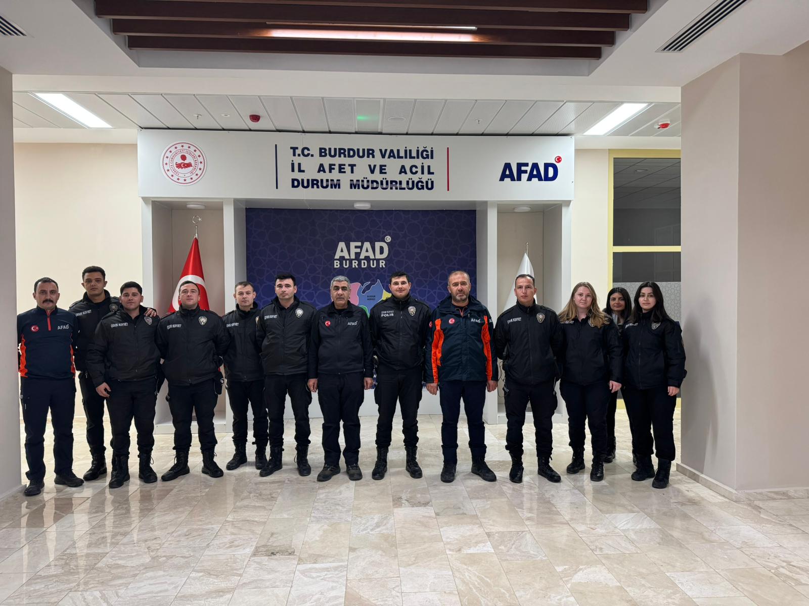 Burdur İl Emniyet Müdürlüğü Çevik Kuvvet Şube Müdürlüğü personeline, afetlere yönelik hazırlık çalışmalarının güçlendirilmesi amacıyla “Enkazda Arama Kurtarma Eğitimi” verildi.