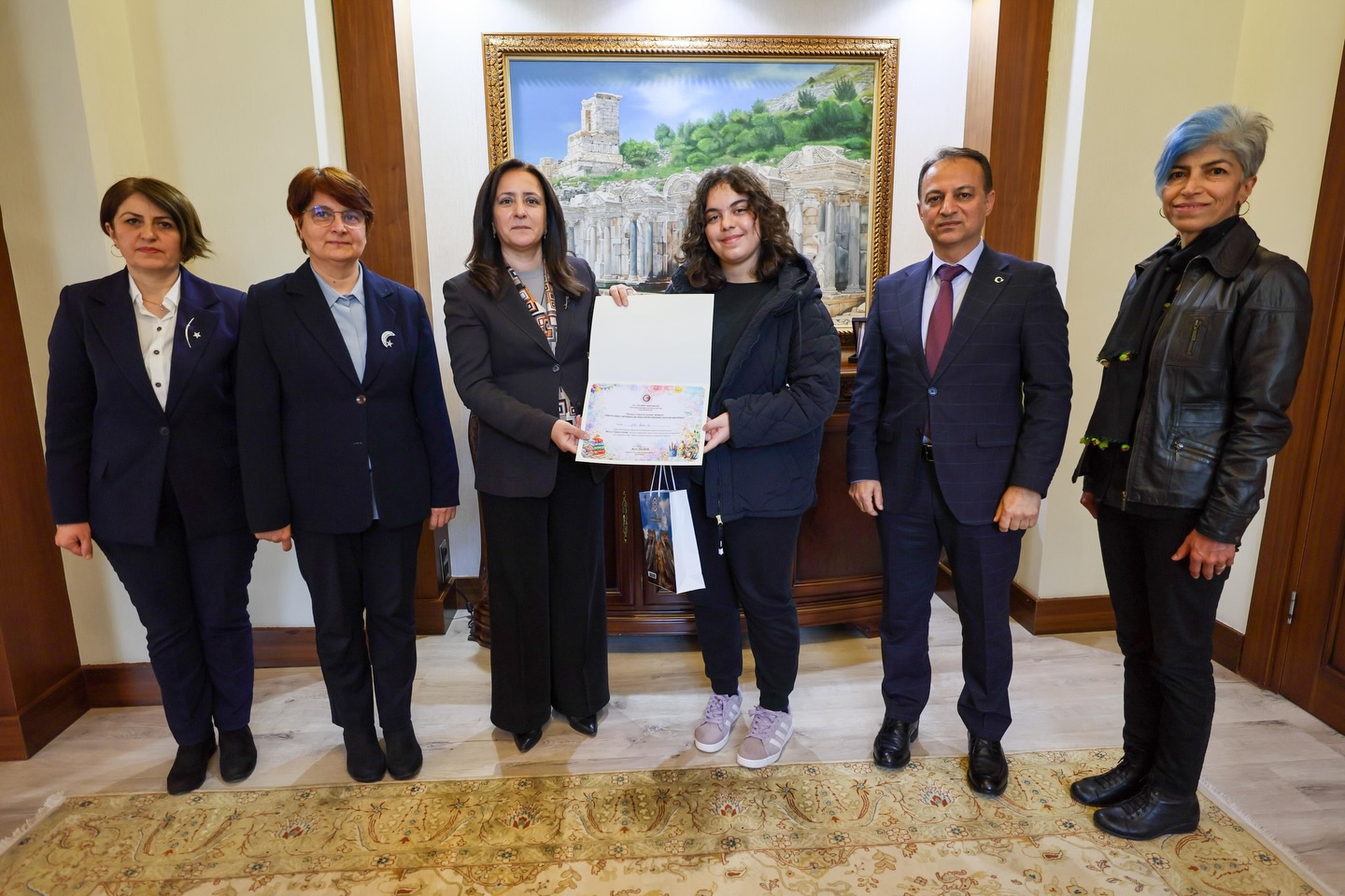 Ticaret Bakanlığı tarafından düzenlenen 2025 yılı Bilinçli Tüketici konulu resim yarışmasında il birincisi olan Şeker Ortaokulu öğrencisi Elif Bade İş, Burdur Valisi Tülay Baydar Bilgihan’ı makamında ziyaret etti.