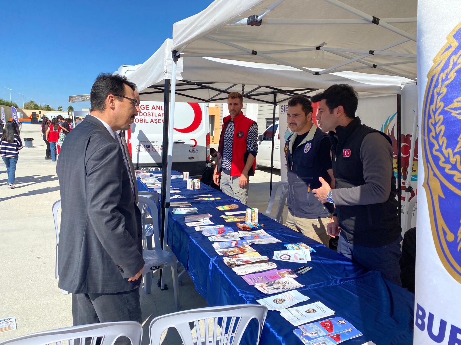 Burdur İl Müftüsü Ali Hayri Çelik, “Geçerken İyilik Topluluğu” tarafından açılan standı ziyaret etti.