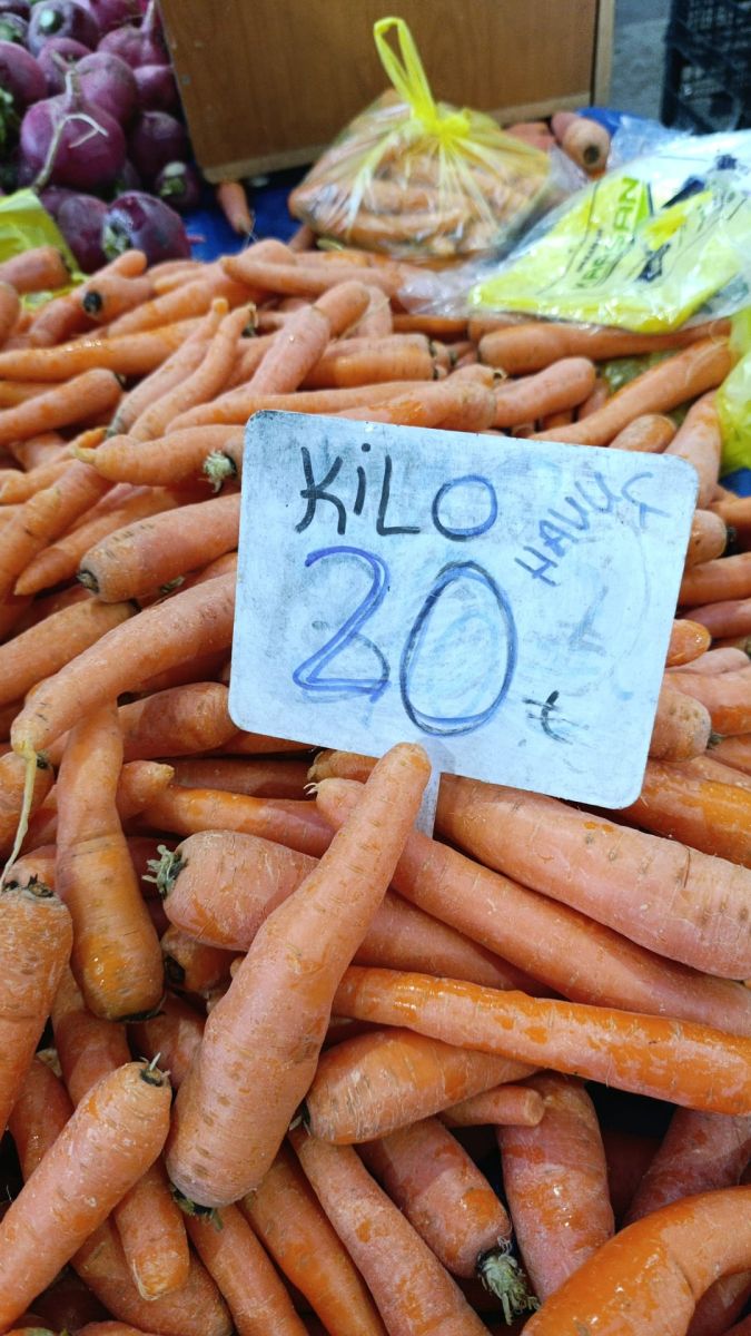 Meyve fiyatlarında da benzer bir tablo görülüyor. Portakalın 3 kilosu 100 TL’den satılırken, elmanın kilosu 30 TL, muzun kilosu ise 50 TL olarak ölçülüyor. Havuç ise en uygun ürünler arasında yer alıyor; kilosu 20 ile 30 TL arasında değişiyor.