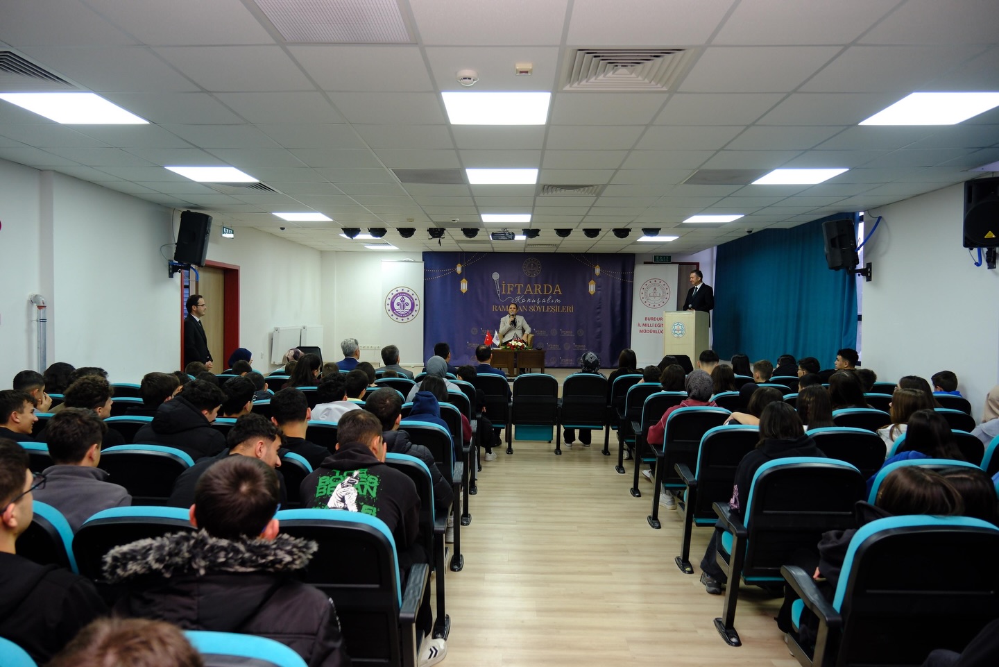 Burdur’da Ramazan ayı etkinlikleri kapsamında düzenlenen “Maarifin Kalbinde Ramazan; İftarda Konuşalım” programı, yoğun katılımla gerçekleştirildi. Programa Burdur Valisi Tülay Baydar Bilgihan, İl Müftüsü Ali Hayri Çelik ve İl Milli Eğitim Müdürü M. Necmeddin Dinç katıldı.