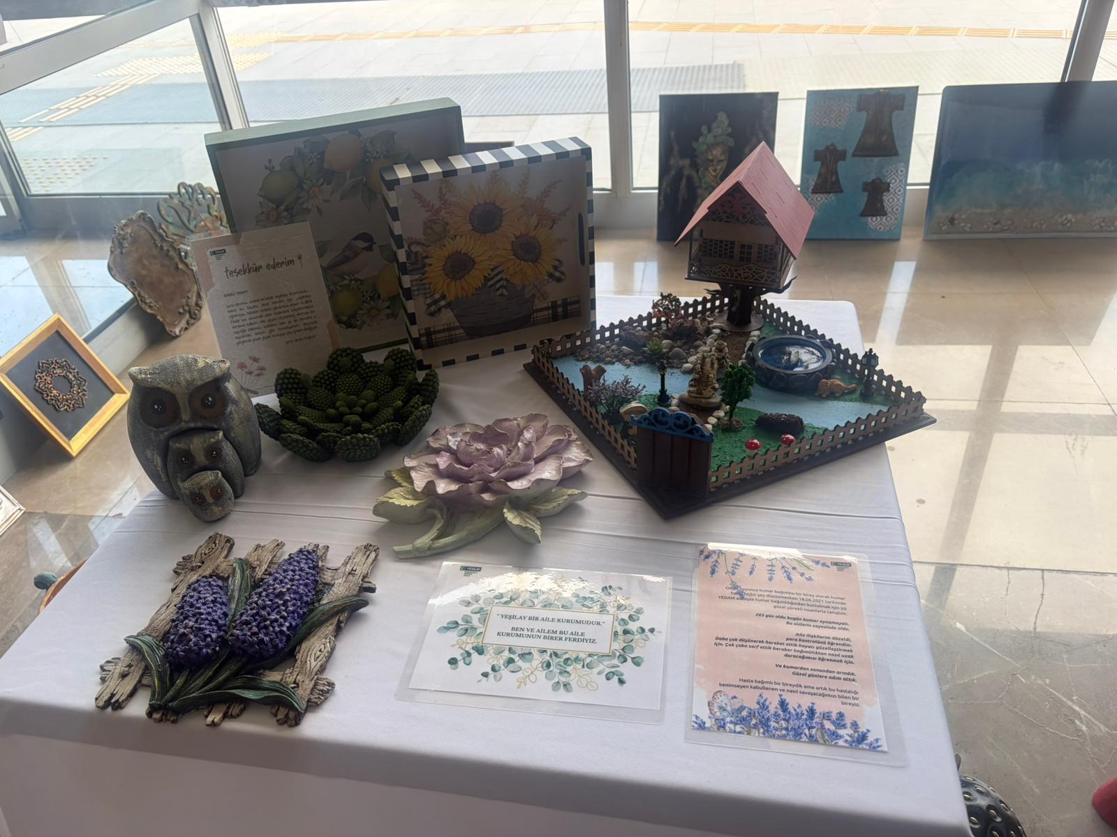 Geçtiğimiz gün gerçekleştirilen atölye sergisinde, danışanların el emeğiyle hazırladıkları ürünler büyük ilgi gördü. Sergide; el işleri, resimler ve farklı tasarımlar yer alırken, etkinlik katılımcılara hem yaratıcı bir ortam sunuyor hem de danışanların toplumsal uyum ve sosyal katılımını desteklemeyi hedefliyor.