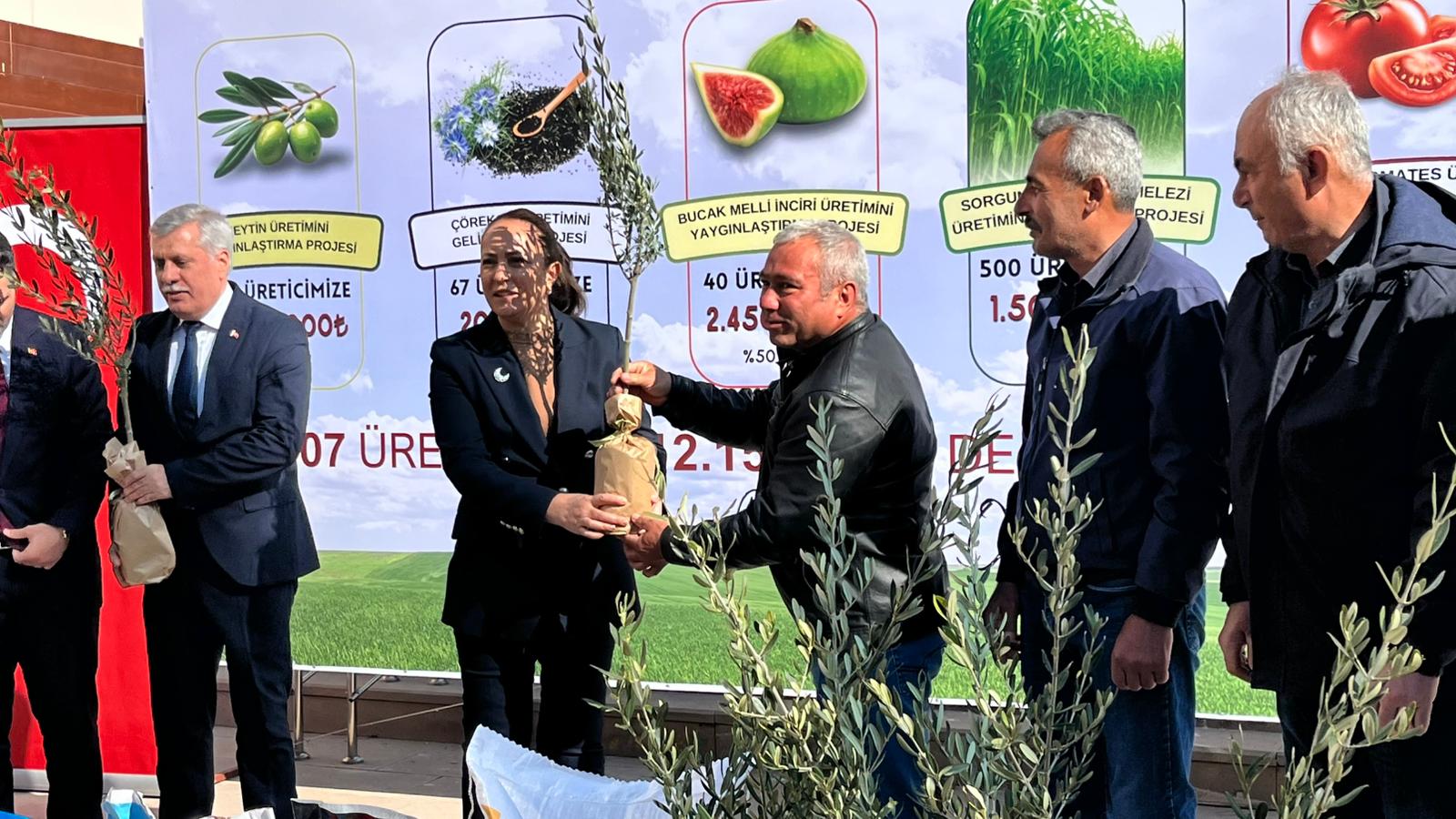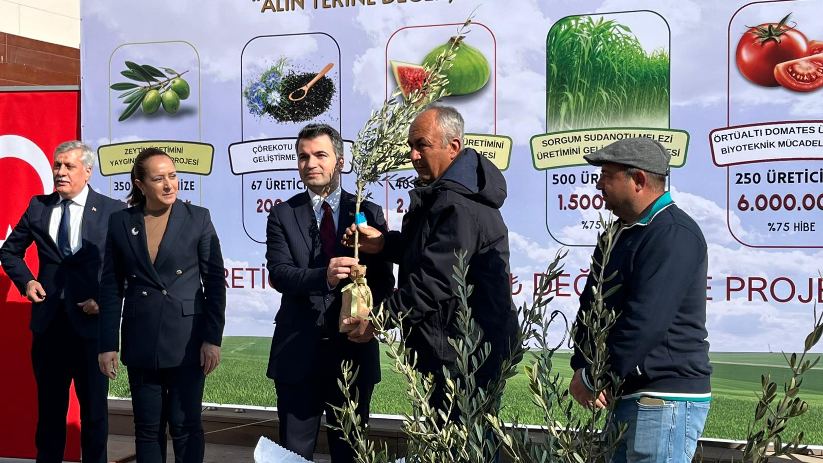Lansman programı kapsamında çiftçilere Zeytin Ağacı, Melli İnciri, Gübre ve Tohumlar dağıtıldı.