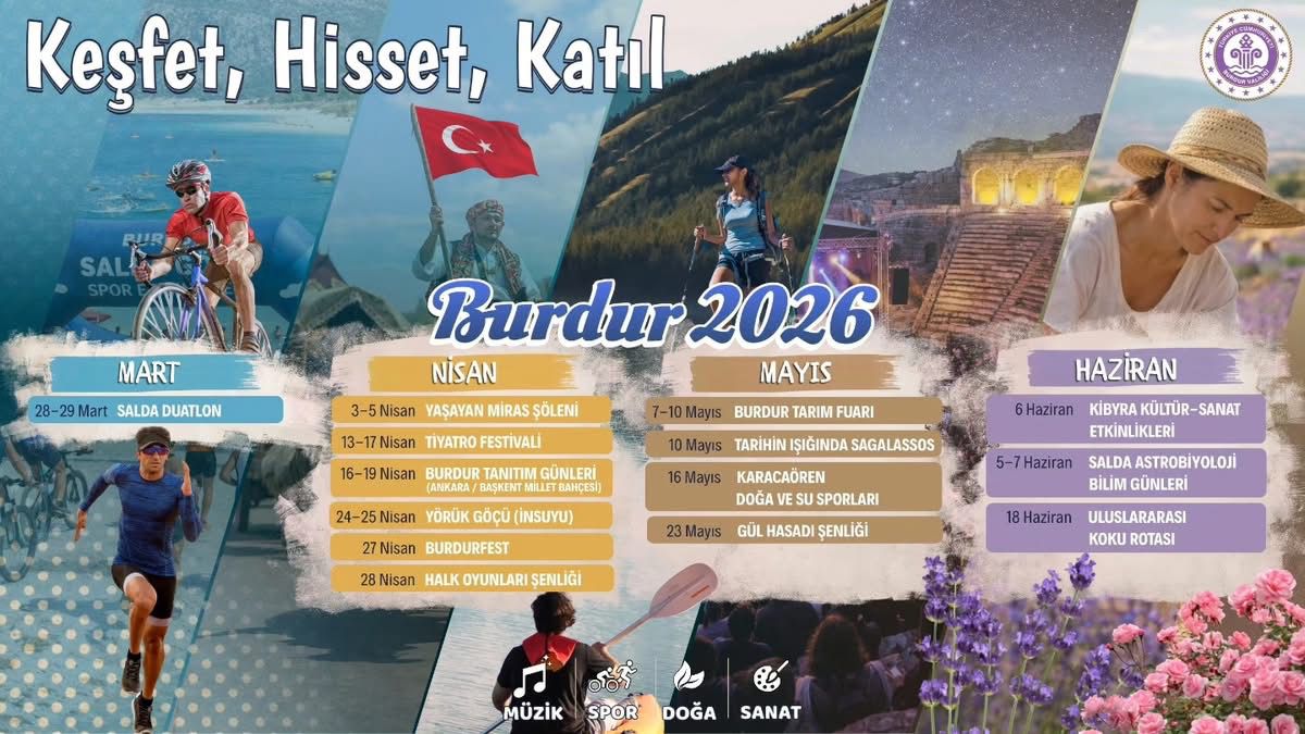Burdur Valiliği, 2026 yılı boyunca kent genelinde sosyal, kültürel ve farklı alanlara yönelik etkinliklerin planlandığını açıkladı. Yıl geneline yayılan programın detayları kamuoyu ile paylaşıldı.