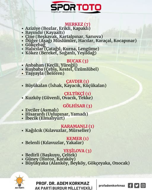 Halı sahaların yapılacağı köyler ve ilçeler şu şekilde açıklandı: