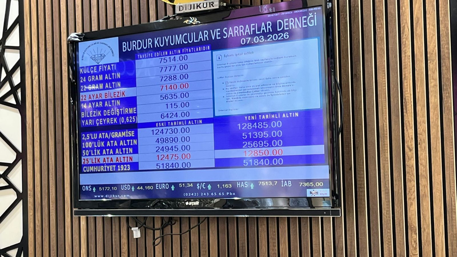 Burdur Kuyumcular ve Sarraflar Derneği tarafından 7 Mart 2026 Cumartesi günü saat 09.00 itibarıyla güncel altın fiyatları şu şekilde: