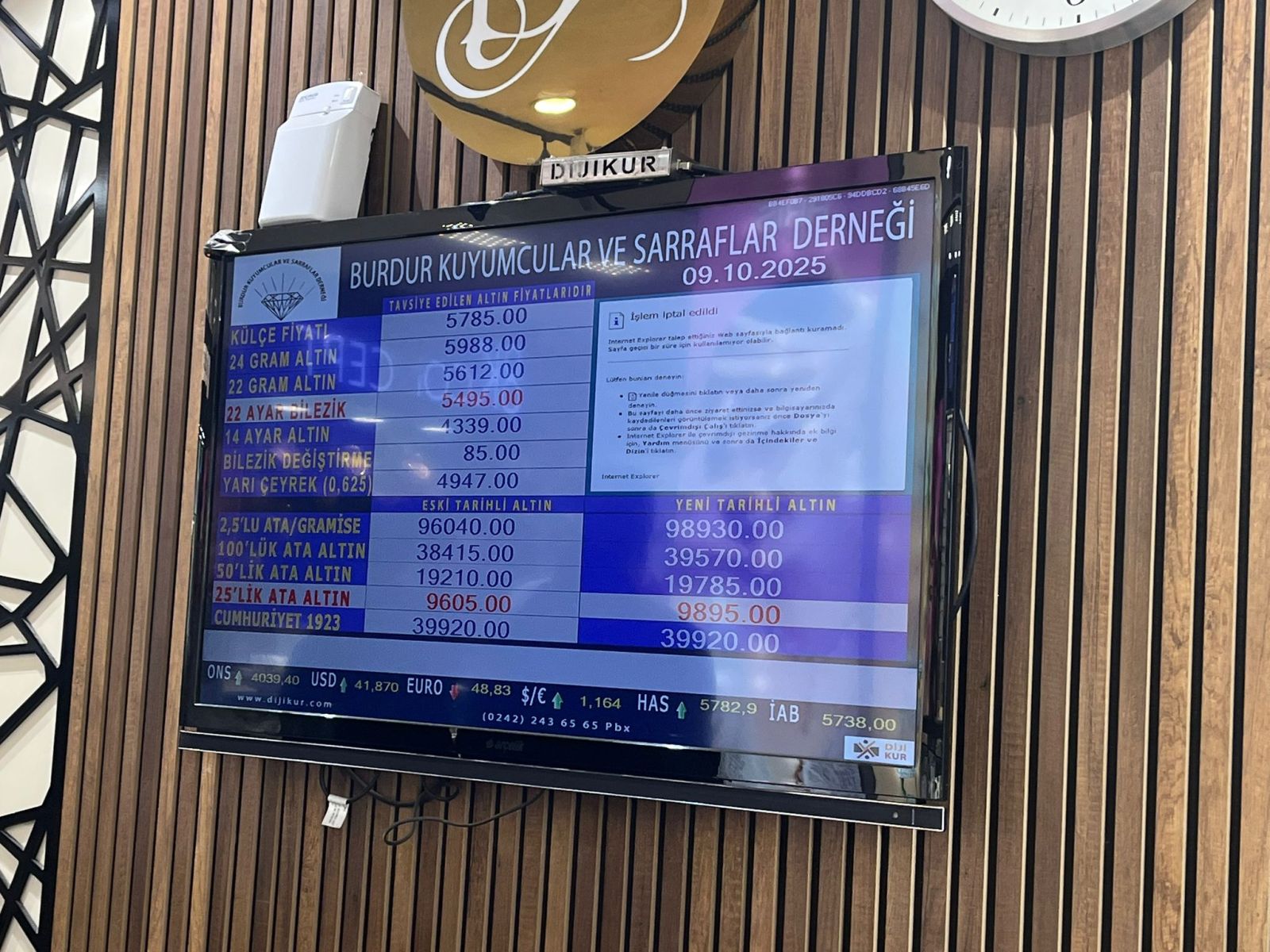 Burdur Kuyumcular ve Sarraflar Derneği, 9 Ekim 2025 Perşembe günü saat 09.00 itibarıyla güncel altın fiyatlarını açıkladı. Dernek tarafından yayımlanan listeye göre, altın fiyatlarında dikkat çekici bir artış yaşandı.