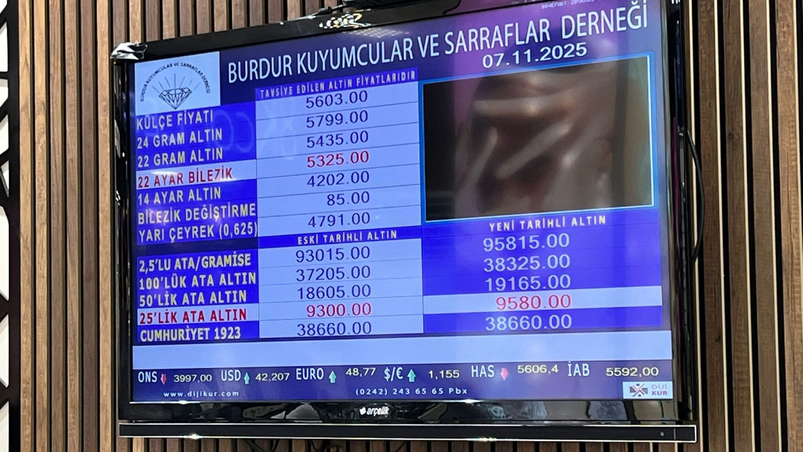 Burdur Kuyumcular ve Sarraflar Derneği tarafından 7 Kasım 2025 Cuma günü saat 09.00 itibarıyla güncel altın fiyatları şu şekilde: