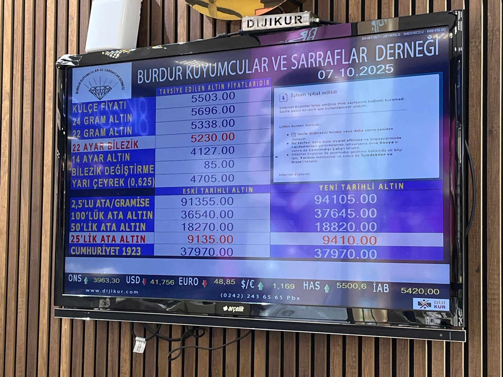 Burdur Kuyumcular ve Sarraflar Derneği tarafından 7 Ekim 2025 Salı günü saat 09.00 itibarıyla güncel altın fiyatları şu şekilde: