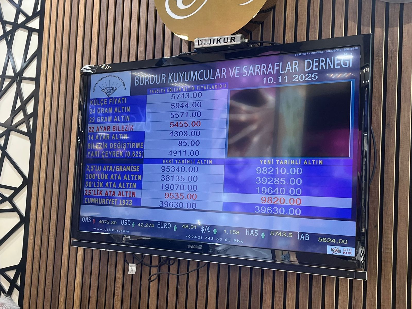Burdur Kuyumcular ve Sarraflar Derneği tarafından 10 Kasım 2025 Pazartesi günü saat 09.00 itibarıyla güncel altın fiyatları şu şekilde: