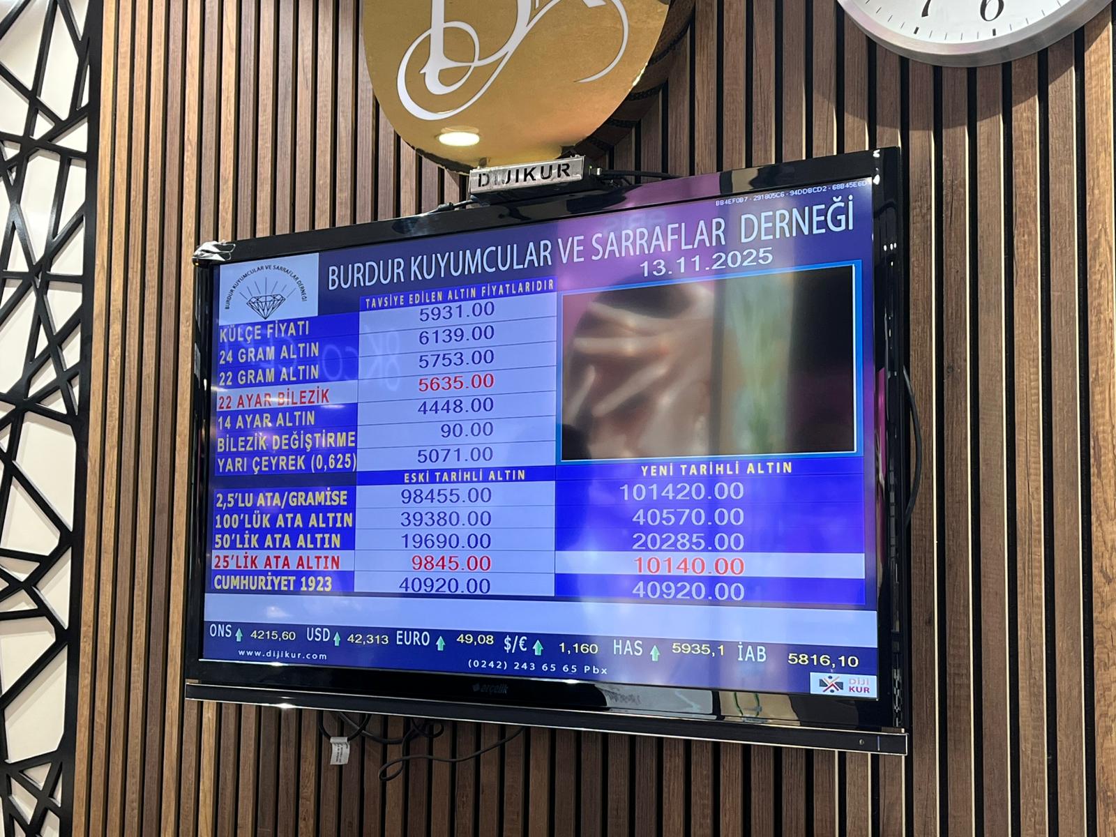Burdur Kuyumcular ve Sarraflar Derneği tarafından 13 Kasım 2025 Perşembe günü saat 09.00 itibarıyla güncel altın fiyatları şu şekilde: