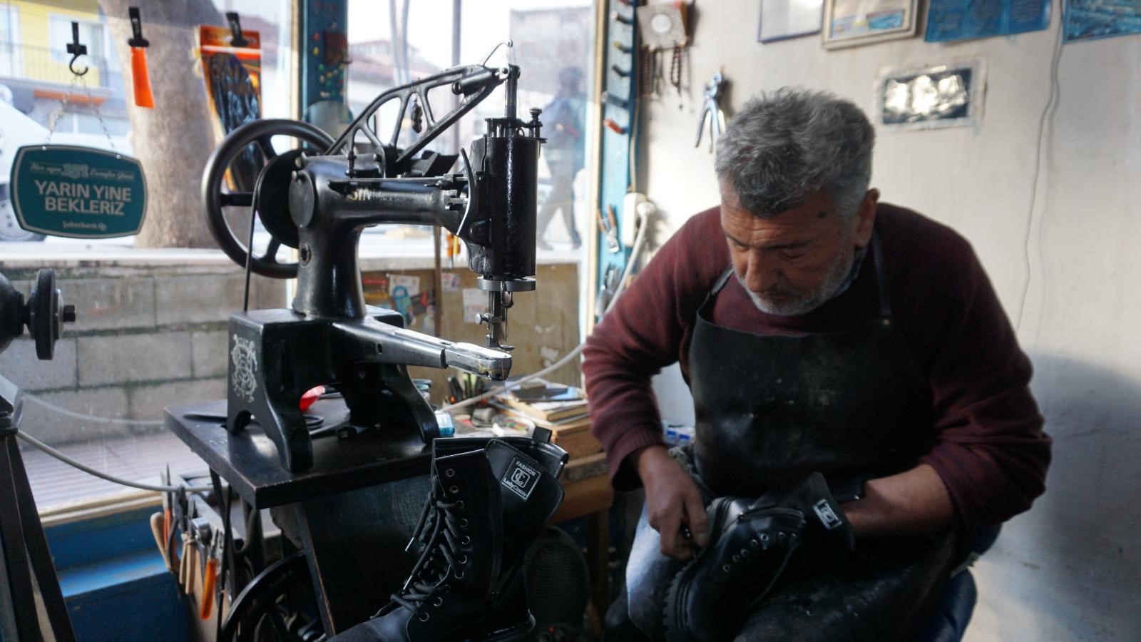 İlkokula giderken boş zamanlarında babasının yanına gelerek ayakkabı tamirciliğini öğrendiğini anlatan Ali Şakar, "40-45 senedir bu işi yapıyorum. Babamdan öğrendiğim gibi yıllardır bu mesleği sürdürüyorum. Ayakkabı tamiri, boyaması, valiz, çanta gibi tüm eşyaların tamirini yapıyoruz. İlçemizde de bu mesleği yapan 2 kişi kaldık. Bir tanesi Armutlu Mahallesi'nde, merkezde de biz varız. Başka da kimse kalmadı. Çırak da zaten bulunmuyor. Artık herkes hazıra yöneldi. Bizi üzen nokta da bu mesleğin kaybolacak olması. Ben mesleği babamın yanında, ilkokulu okurken öğrendim. Ama şimdi gençlerden hevesli kimse yok" dedi.