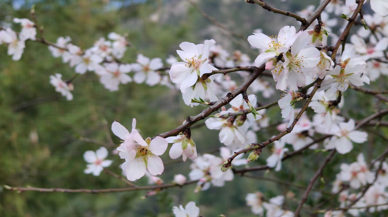 Türkiye'nin büyük bölümünde soğuk hava etkili olurken, ilçede mevsim normallerinin üzerinde seyreden hava sıcaklıkları nedeniyle bazı badem ağaçlarının çiçek açması güzel görüntü oluşturdu.